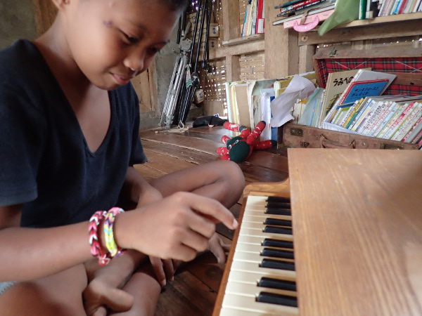エメルが音楽に興味津々です。私がいない間もでたらめにピアノをいじったりはしていたようですが、