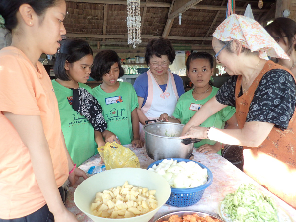 今日は熟練の料理名人たちに、HOJの女の子たちが料理を教わるという感じでした。