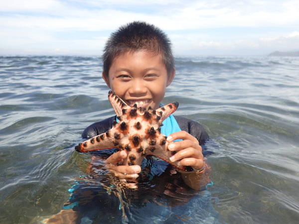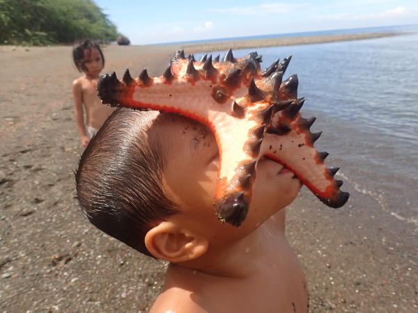 さて、ウラワビーチによくいるこのヒトデ。見た目は毒々しいですが、実際はほとんど無害です。