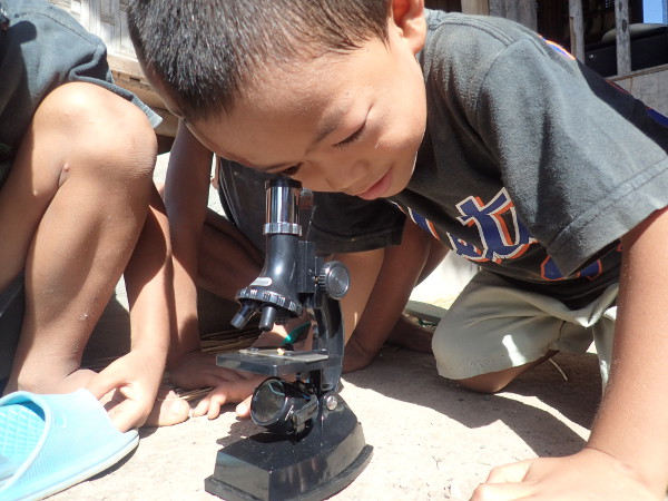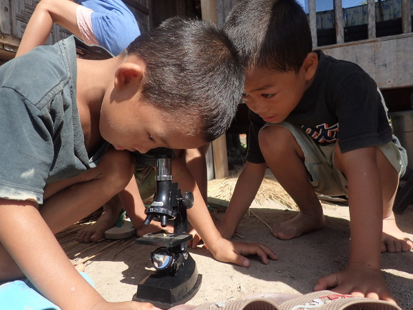 日本からのビジターさんが持ってきてくれたプレゼントの中に簡易な顕微鏡があったのを、