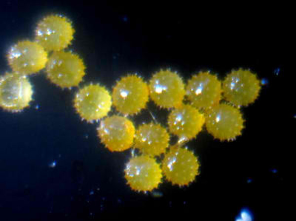 ただの黄色い粉にしか見えないものが、顕微鏡で見ると、