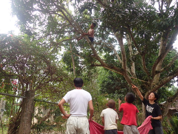 先生の都合で学校が休みになったリッキーが木に登ってマンゴーを取り、