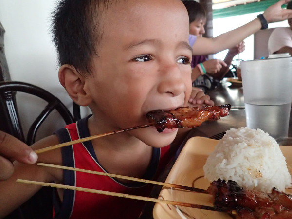 今日は朝ごはんも食べていない、というので、3人を連れてバーベキューハウスへ。
