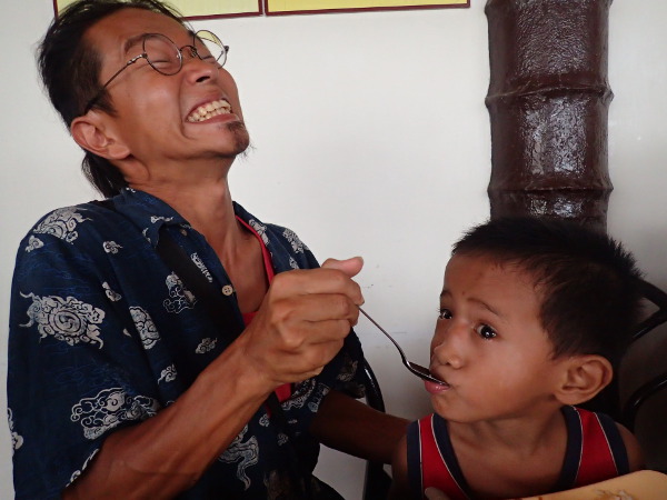 肉ばかり食べてごはんを食べないので、スプーンで食べさせてやったら、
