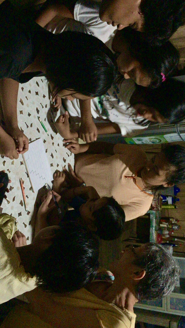 サンロケ小学校からハウスオブジョイに帰ってくると、アベさんのお友達でビジターのトシコさんが女の子たちを集めて何かを書いていました。