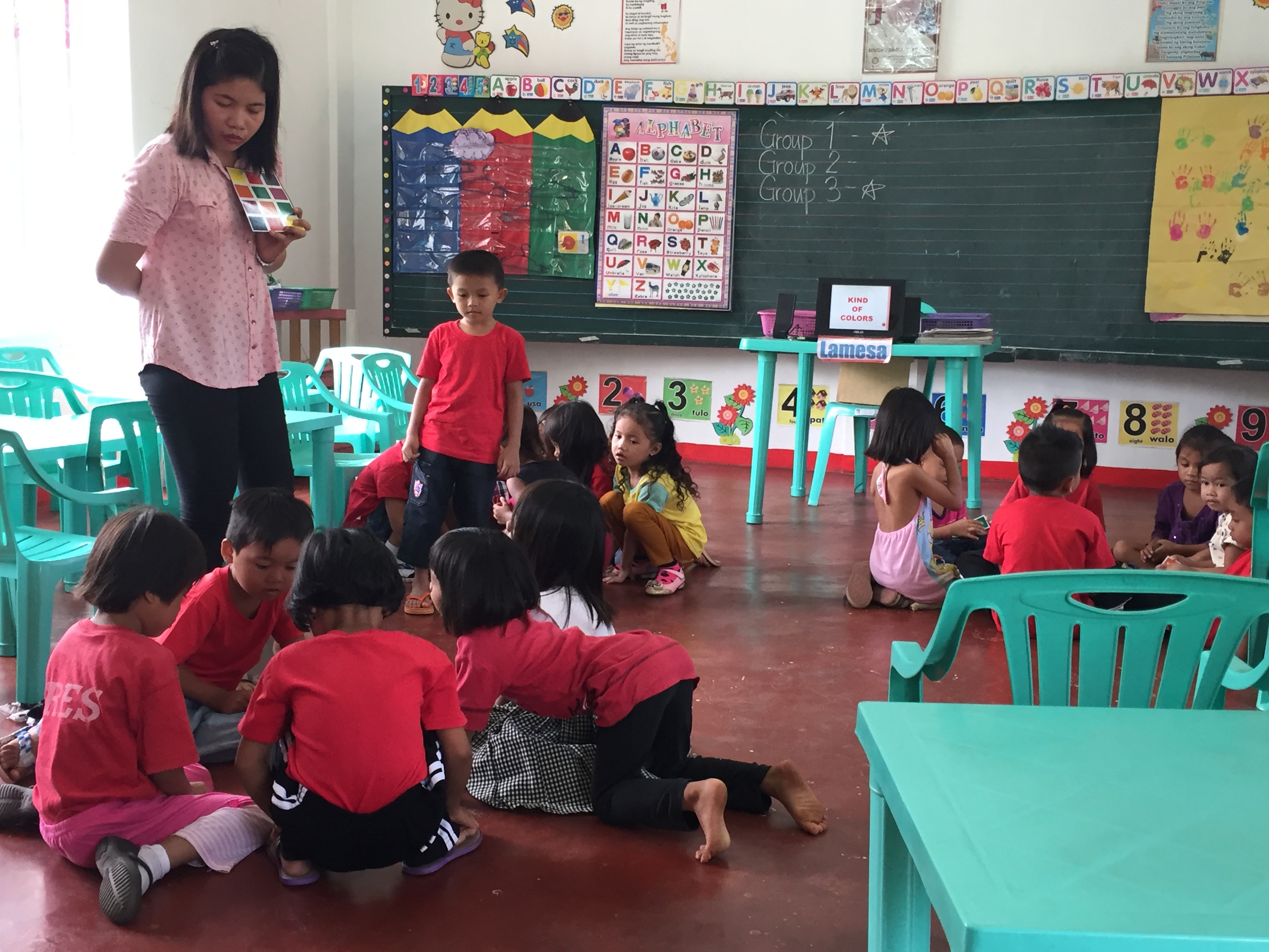 小学校には幼稚園も併設されていて、日本から来た幼稚園の先生方は授業に興味津々!「あの色のカードいいね」「プラスチックのテーブル、軽いし動かしやすいからウチの園でも取り入れたいね」などと、授業や教室をくまなく観察していました。