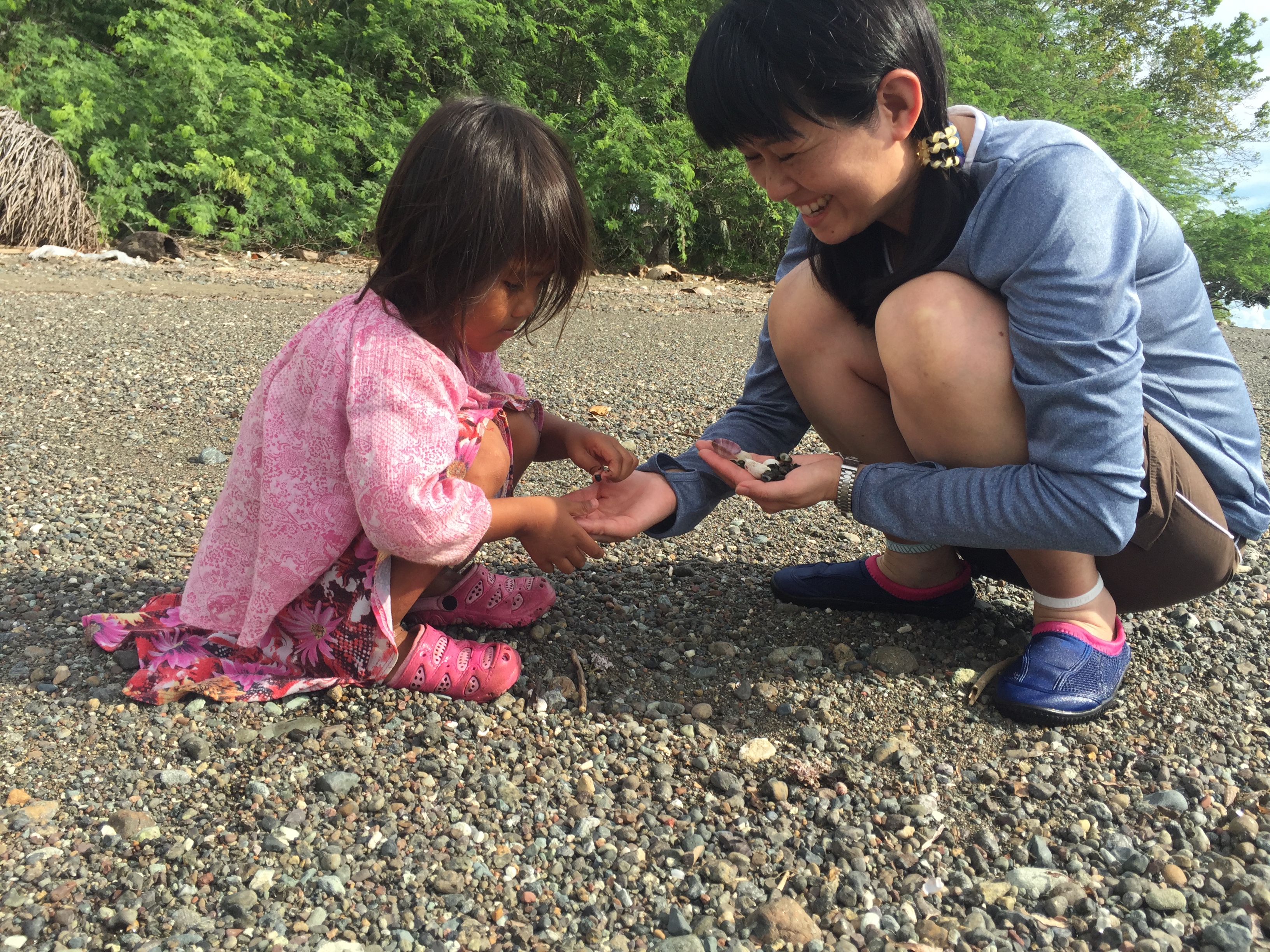 山根神父さんはひたすら泳ぎ、あとのみなさんは砂浜で貝殻を集めてのんびりと過ごしました。