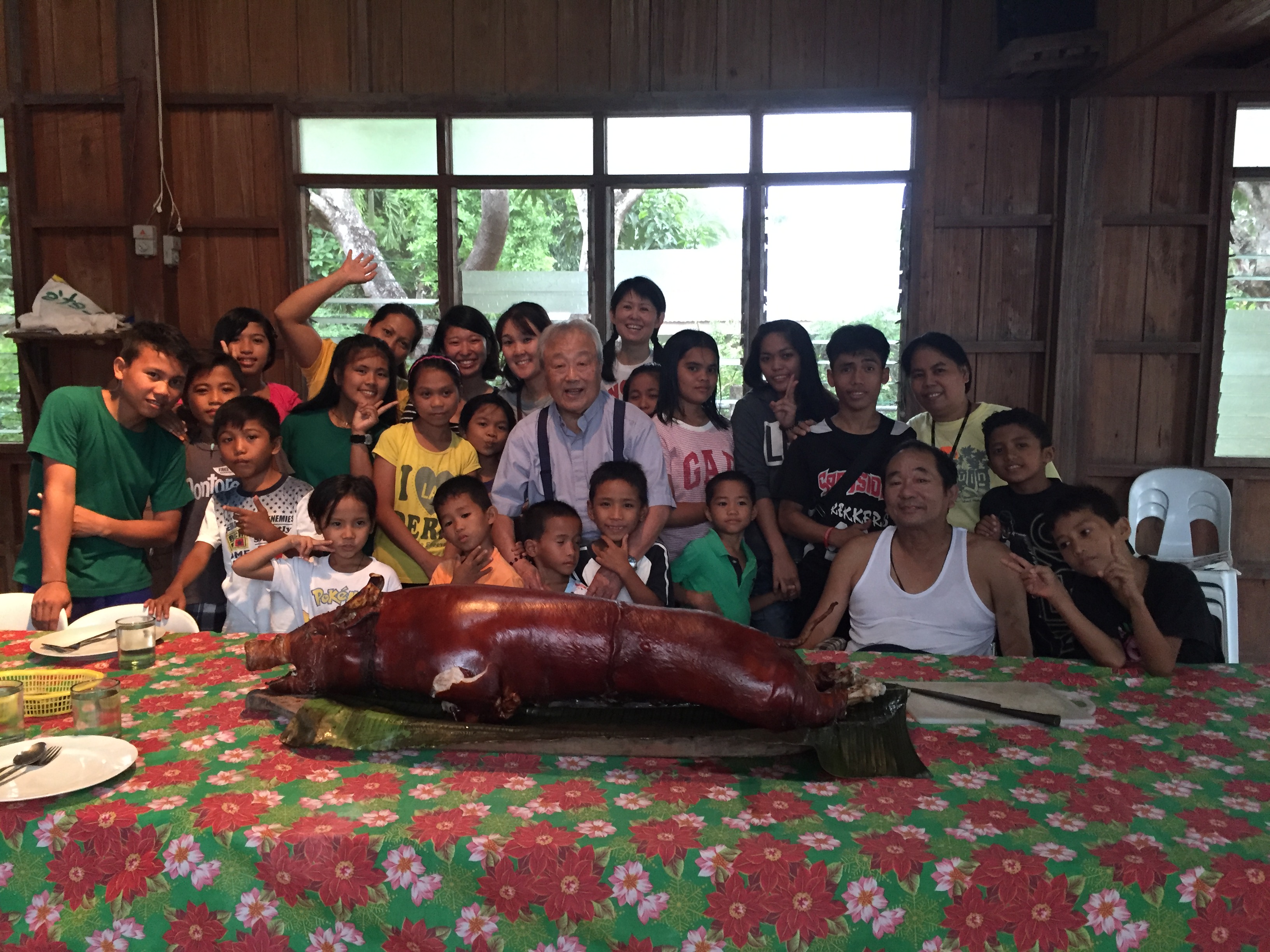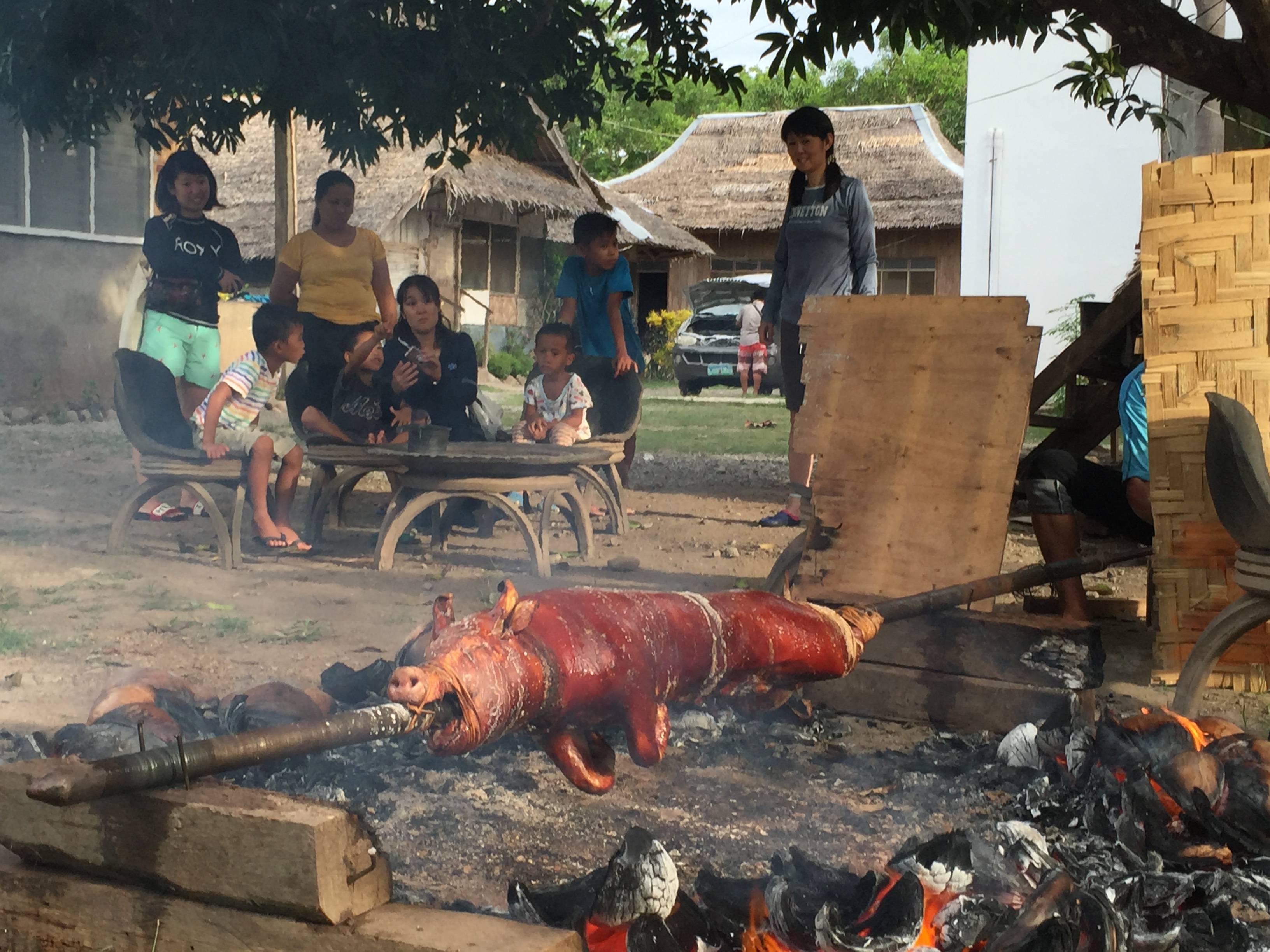 豚の丸焼きをしていました!!なんと、山根神父さんが子ども達にご馳走をしてくれました!!