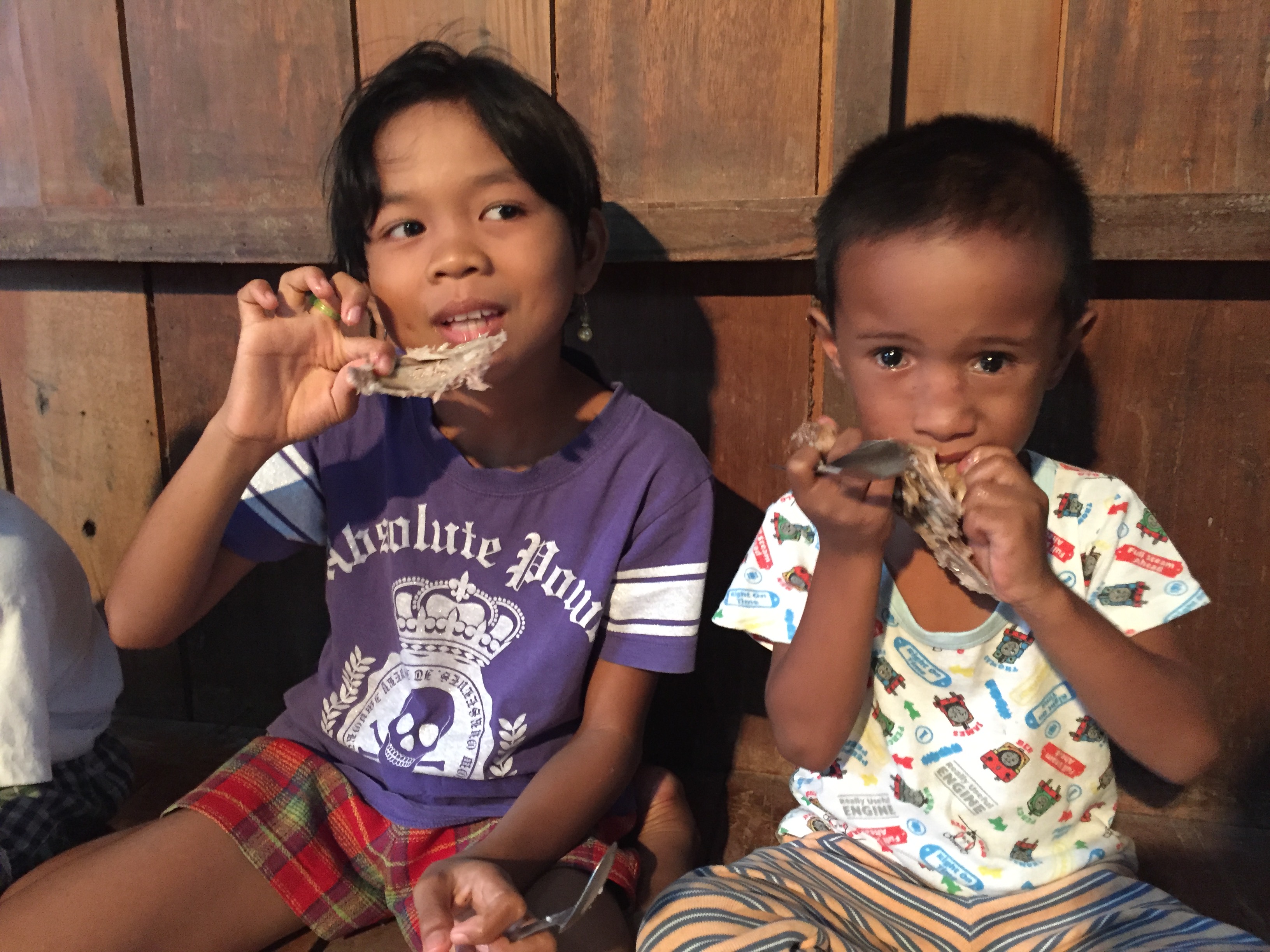 こんがり焼けた豚の丸焼き。思いもよらぬご馳走に、子ども達のおかわりが止まりませんでした!