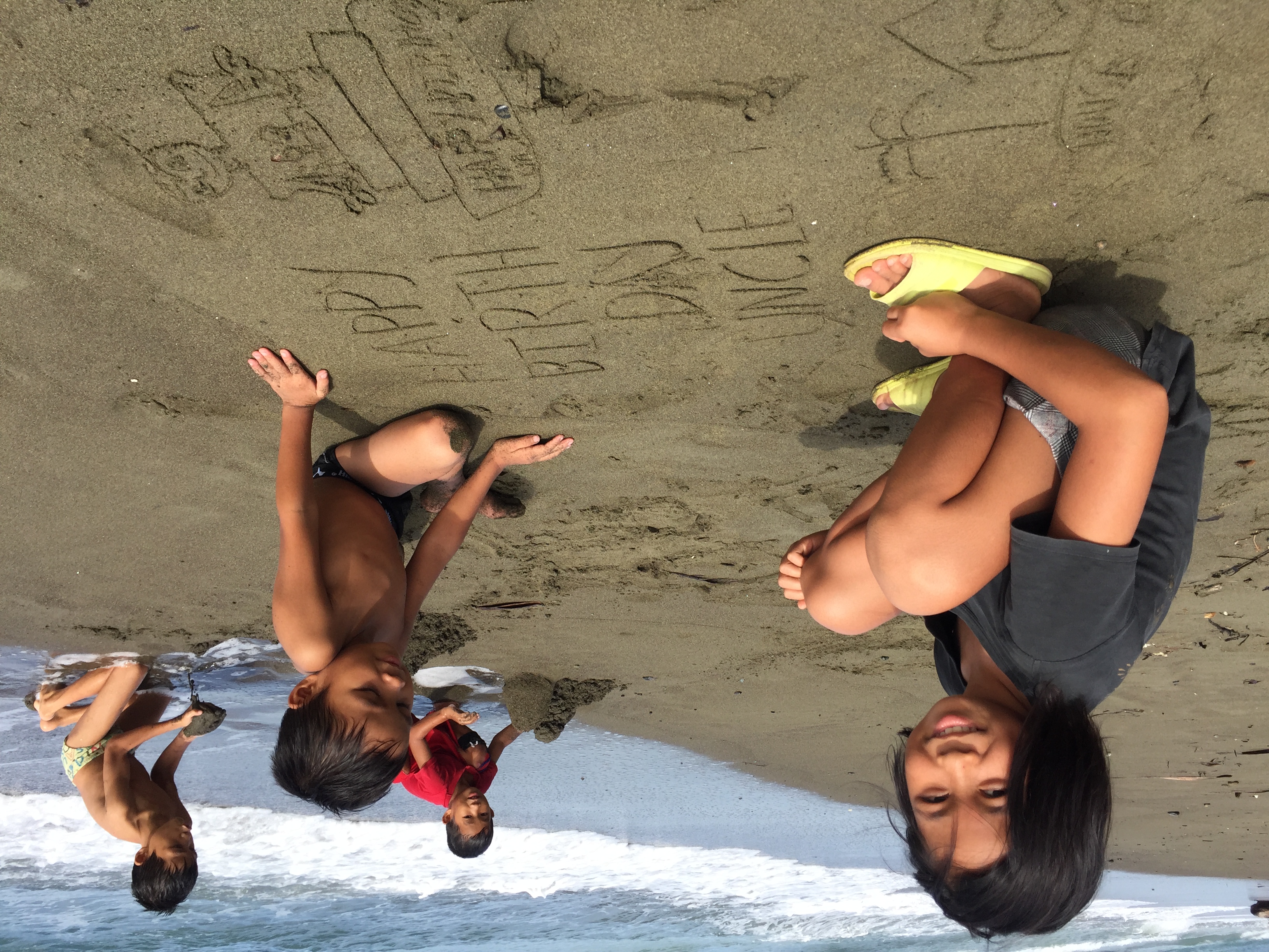 潮が満ちて、久しぶりに波の高いウラワビーチで、小さい子達は危ないので「足だけだよ!」と約束しをしましたが守られるわけもなく、結局びしょ濡れになって遊びました(笑)