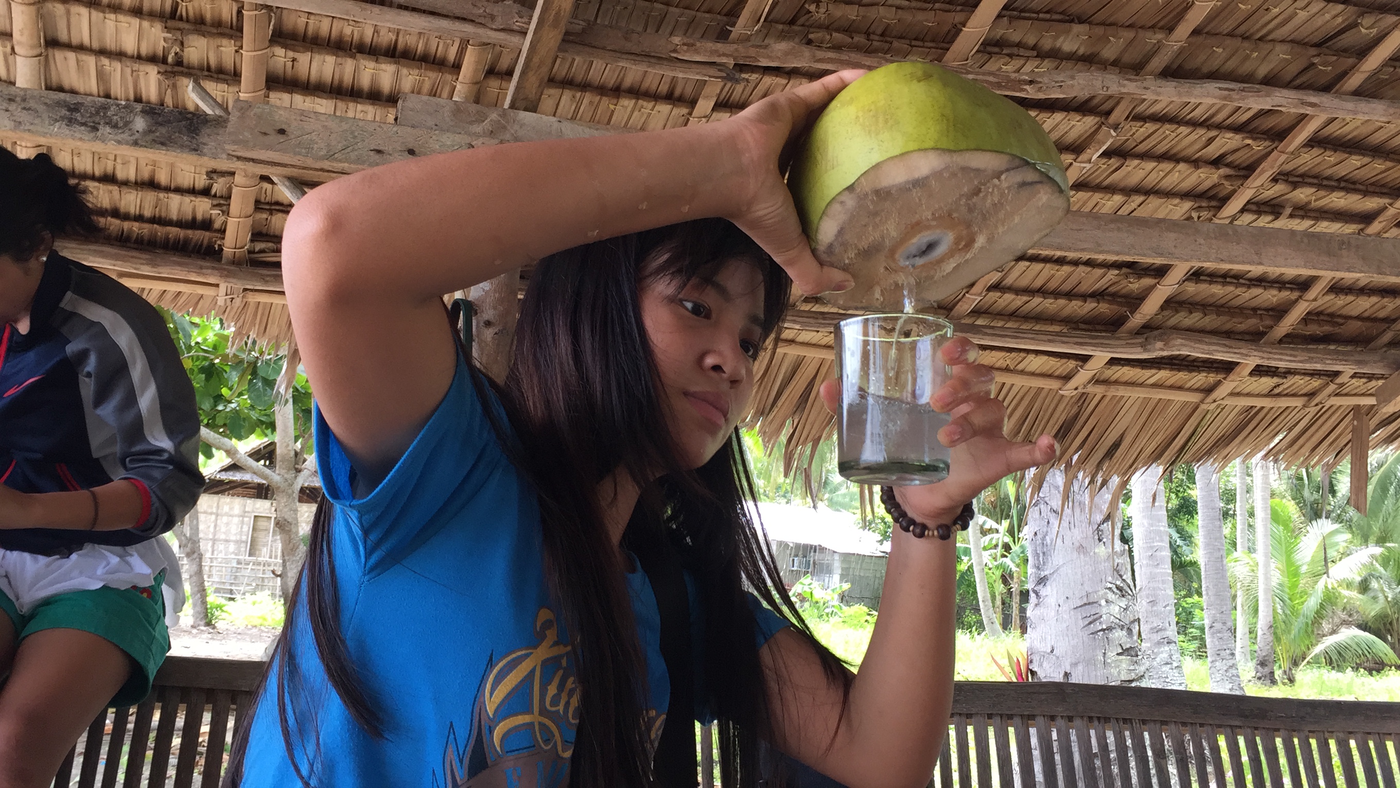 昨日の創立記念日で帰ってきていた卒業生達も沢山遊びました。アナマリスは、採れたてのヤシの実からジュースを一生懸命取り出していました!