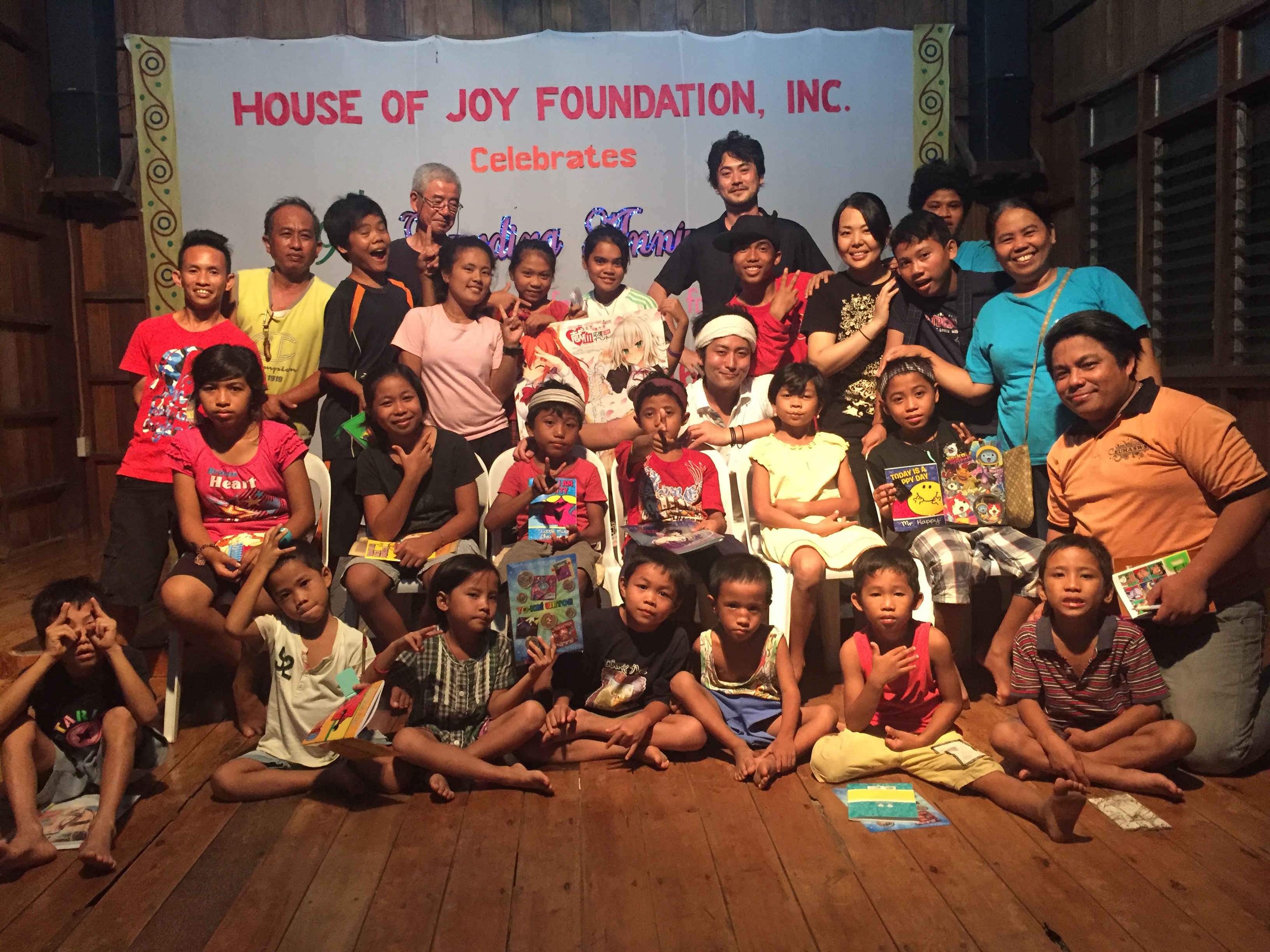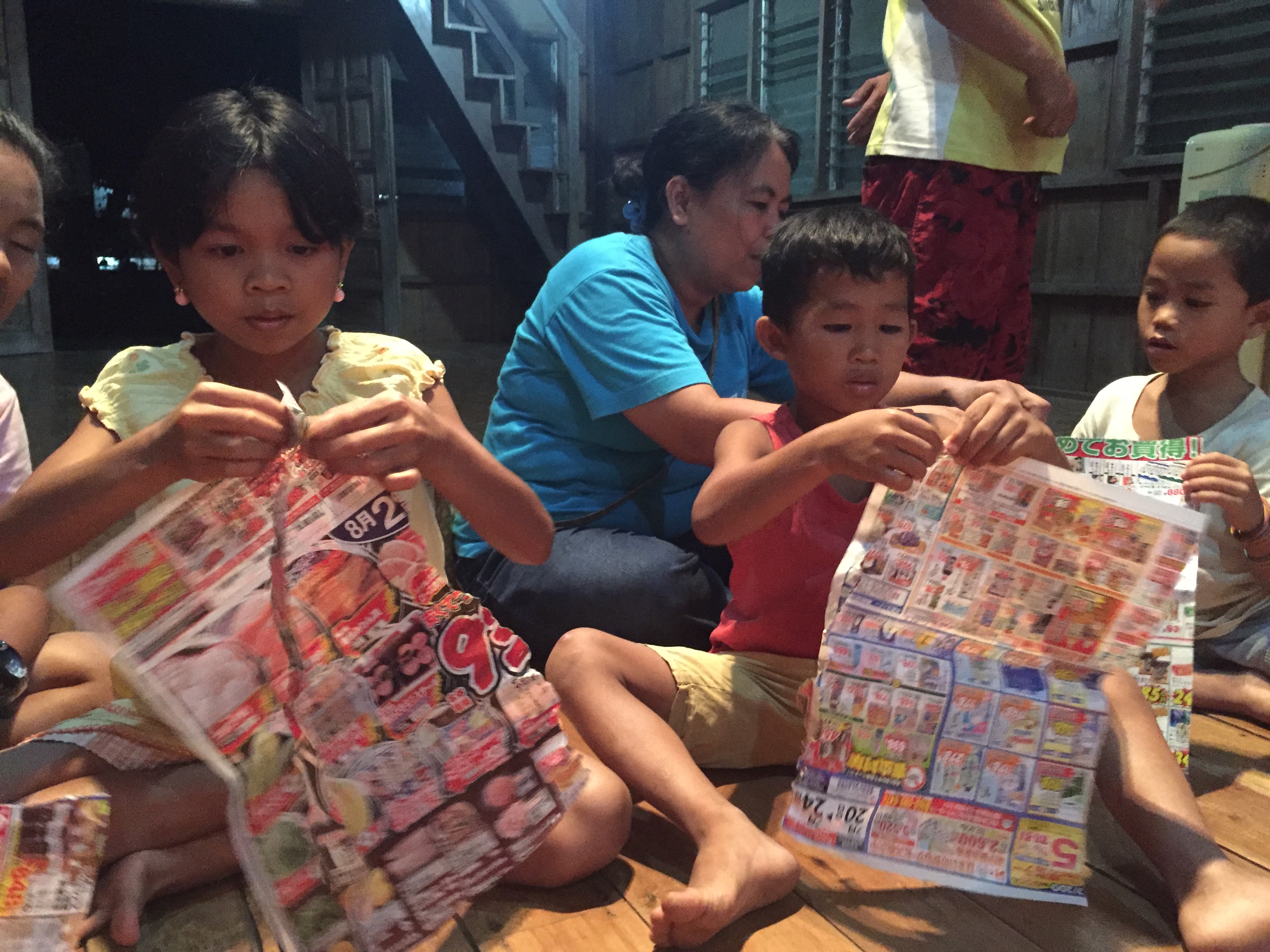 ゲーム大会の賞品をもらって大喜びの子ども達。ユキさんが「勉強頑張ってね!」とメッセージ入りのノートをくれました!よかったね!!