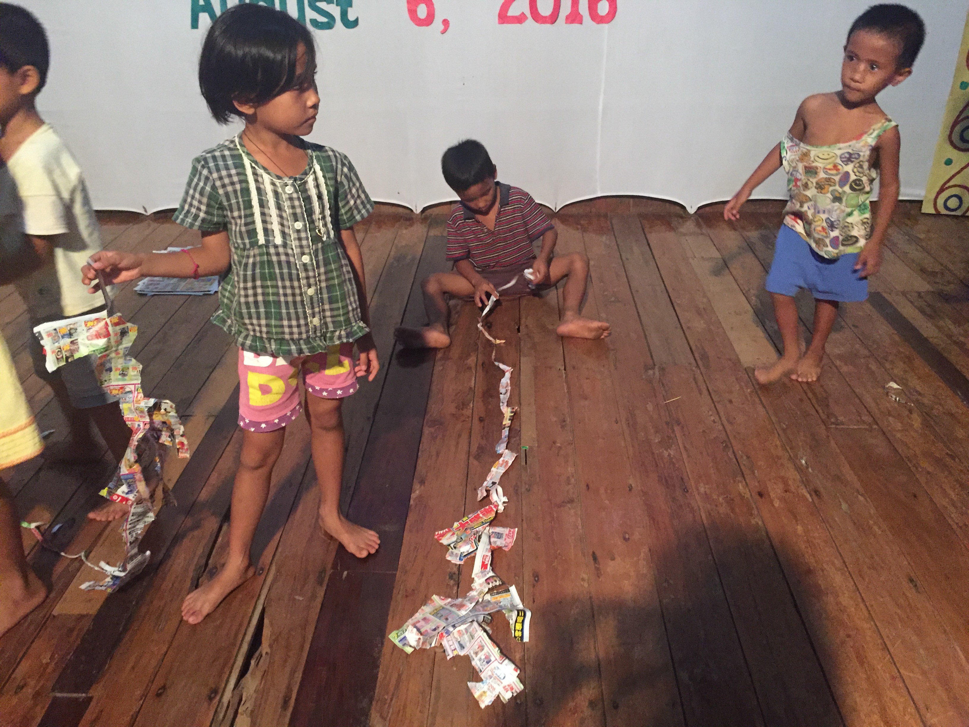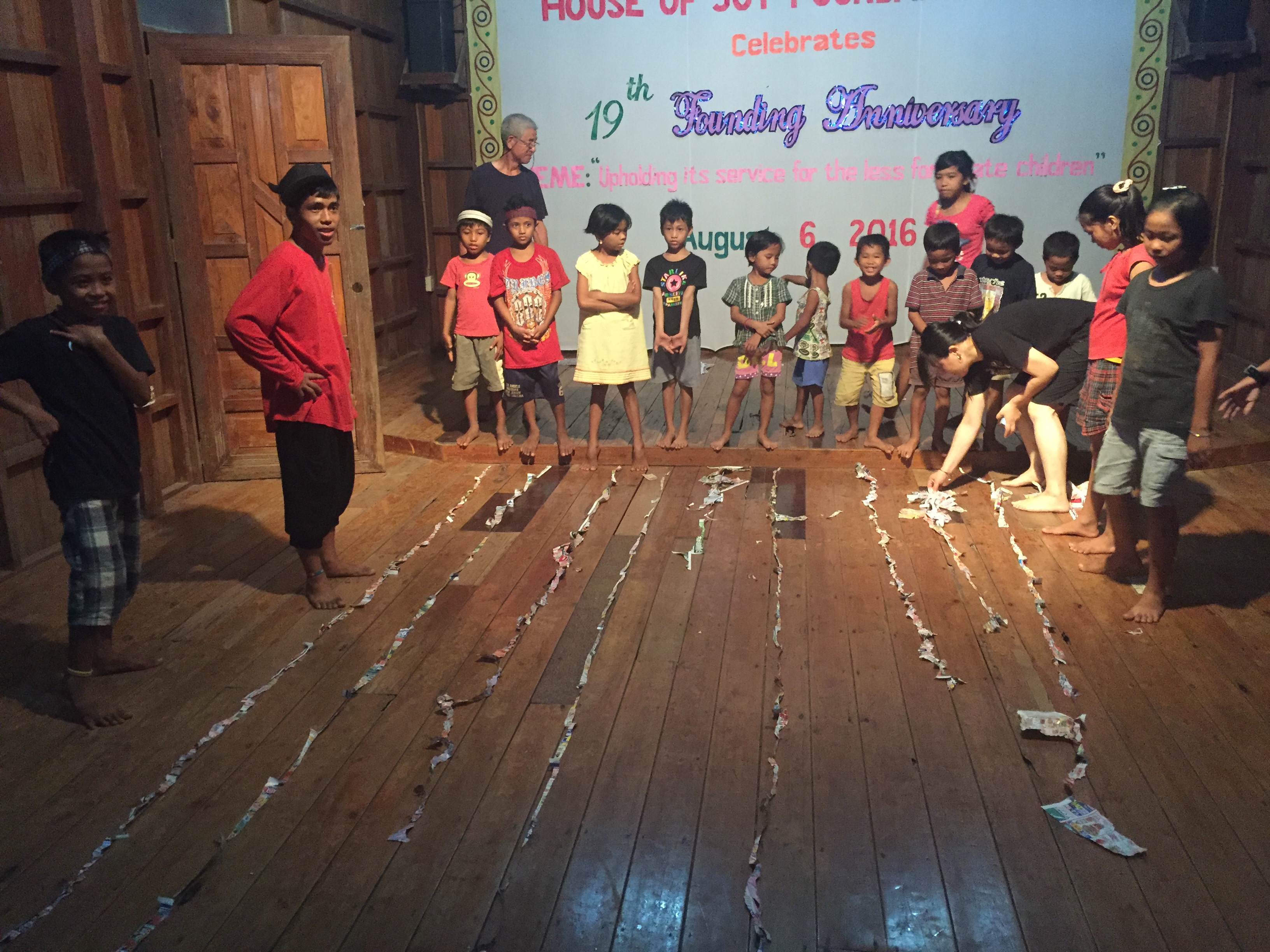 大きい子の大会では、ジュリアンが優勝しました!ジュリアンは紙が入り口から外に出るくらい長く切ることができました!