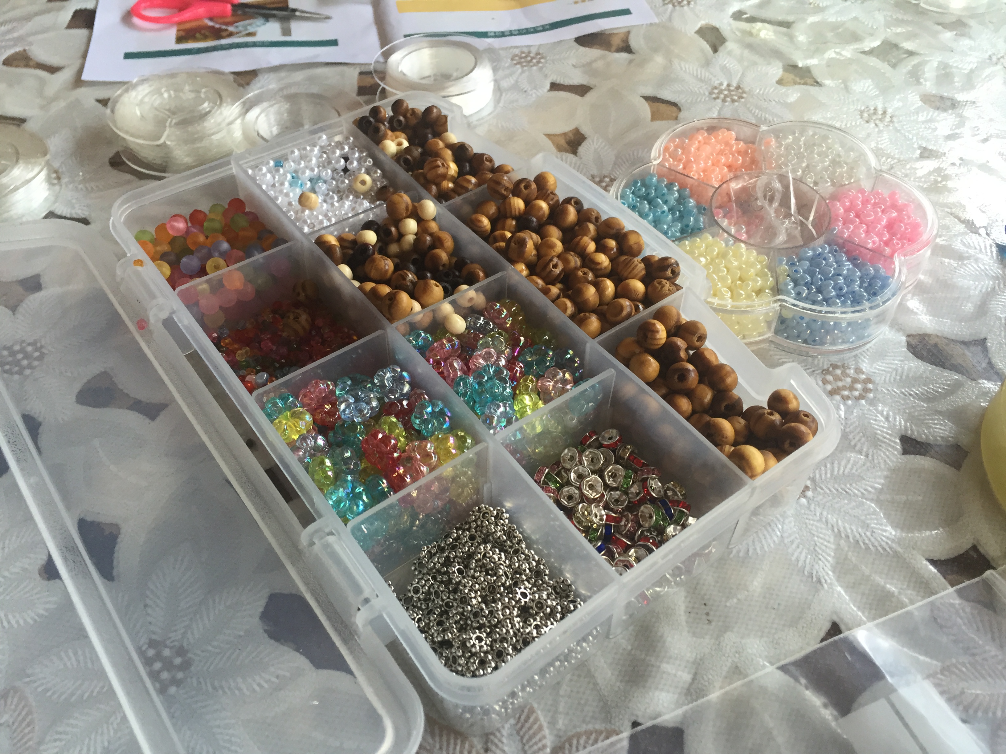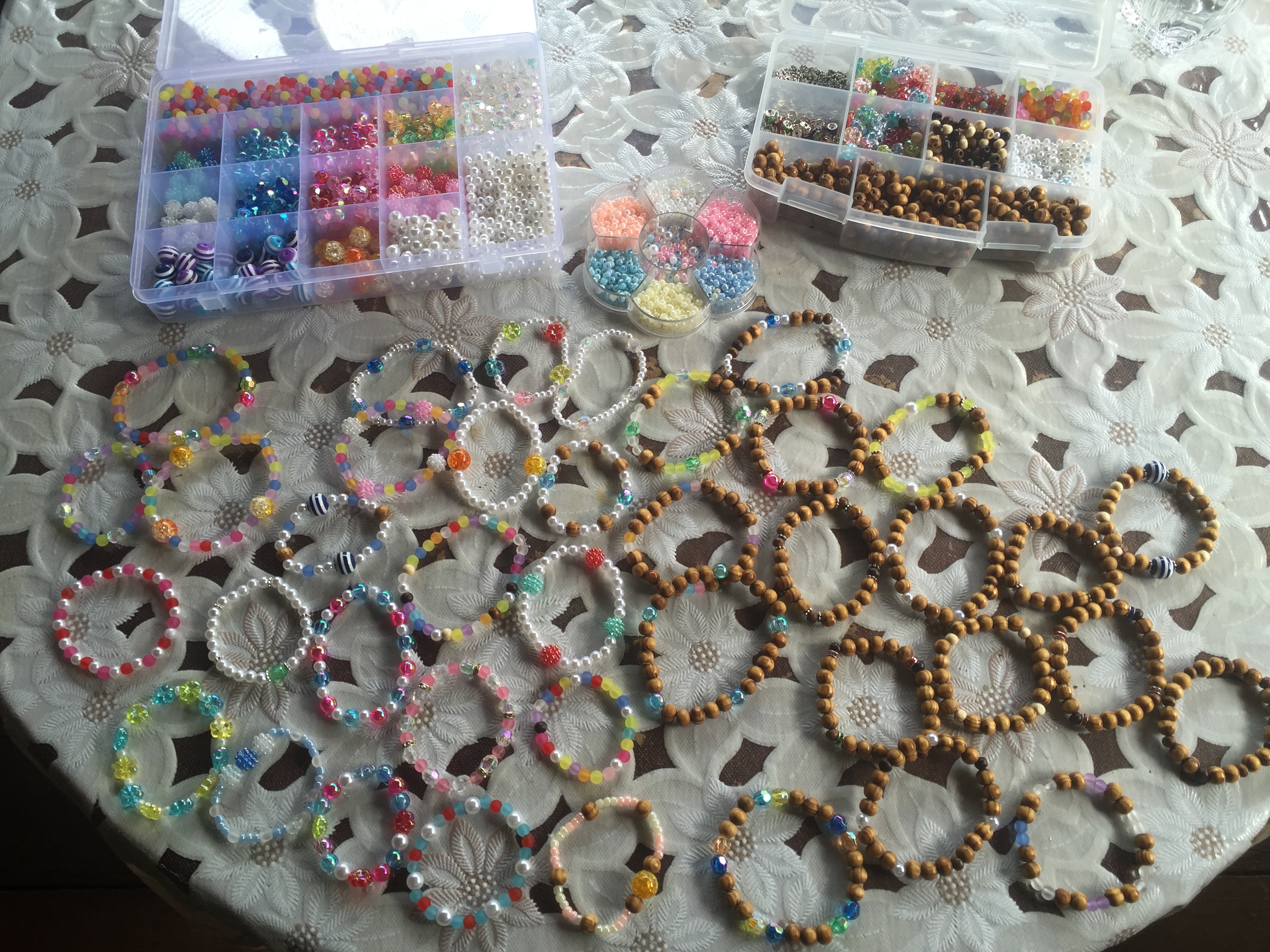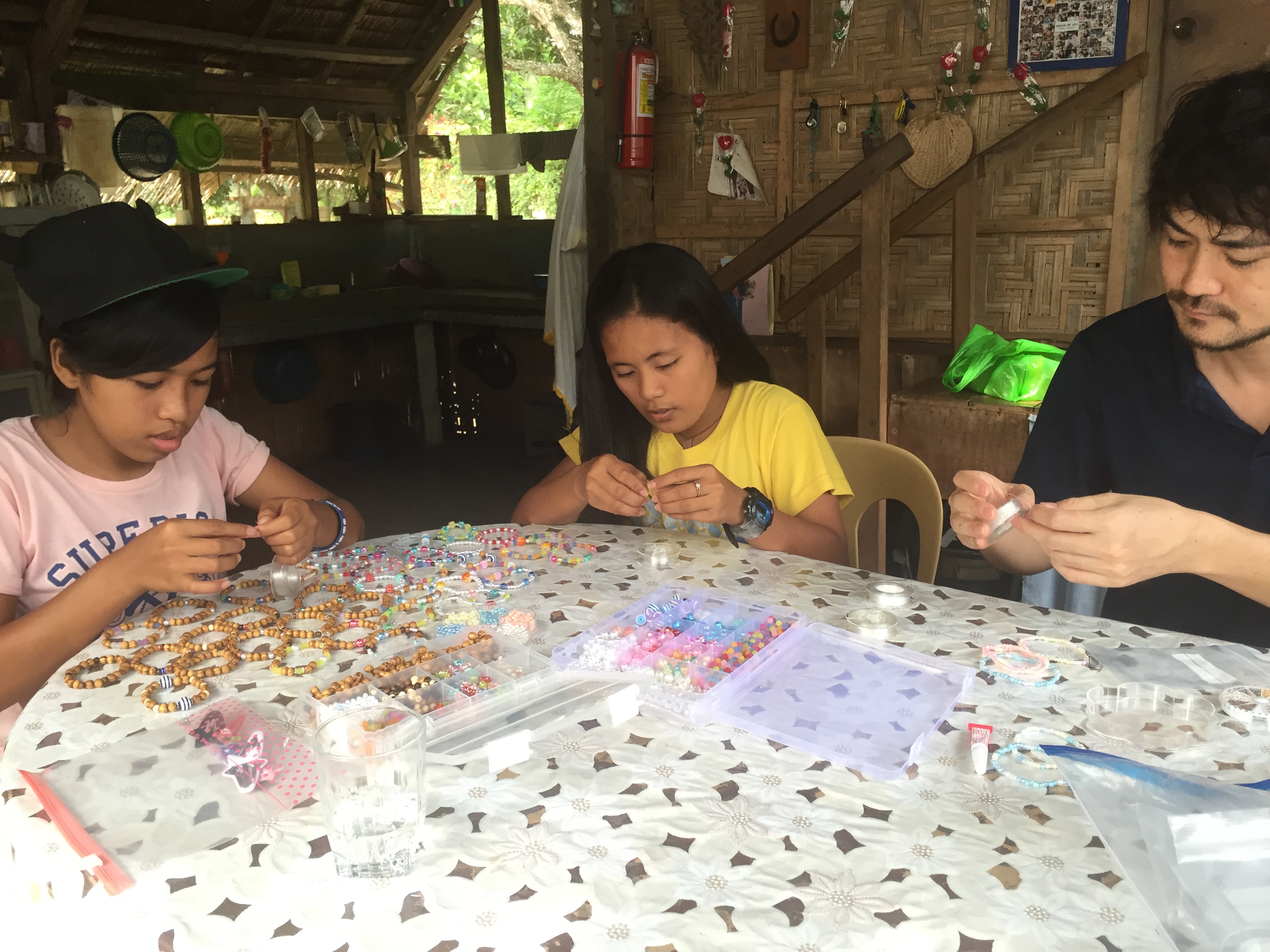 さて、今日はアキオさんが日本から持ってきてくれたビーズを使って、女の子達とブレスレットを作りました!