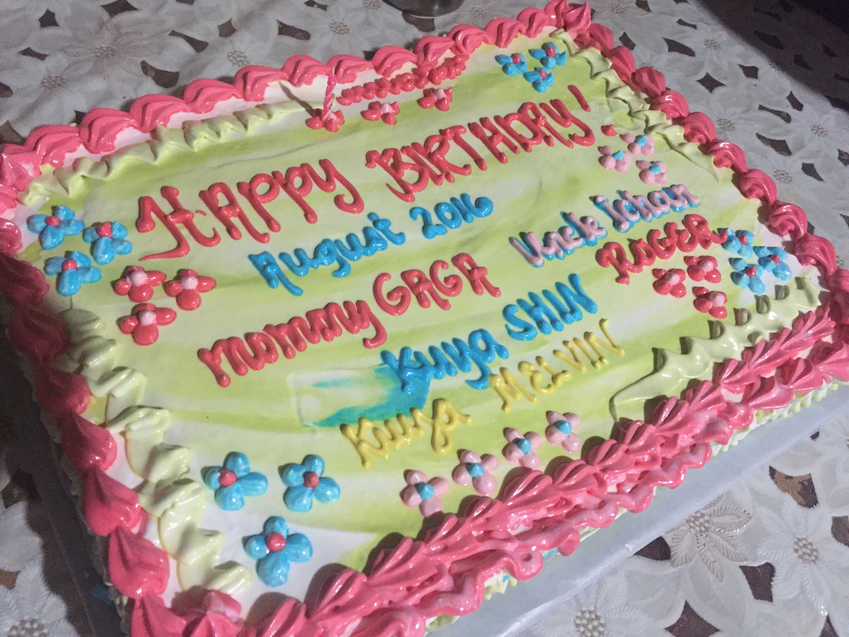 ウェルカムパーティと合わせて、今日が誕生日のスタッフのガガさんのお祝いもしました!ケーキには8月が誕生日の烏山さん、ロジャー、澤村さん、メルヴィンさんの名前も!