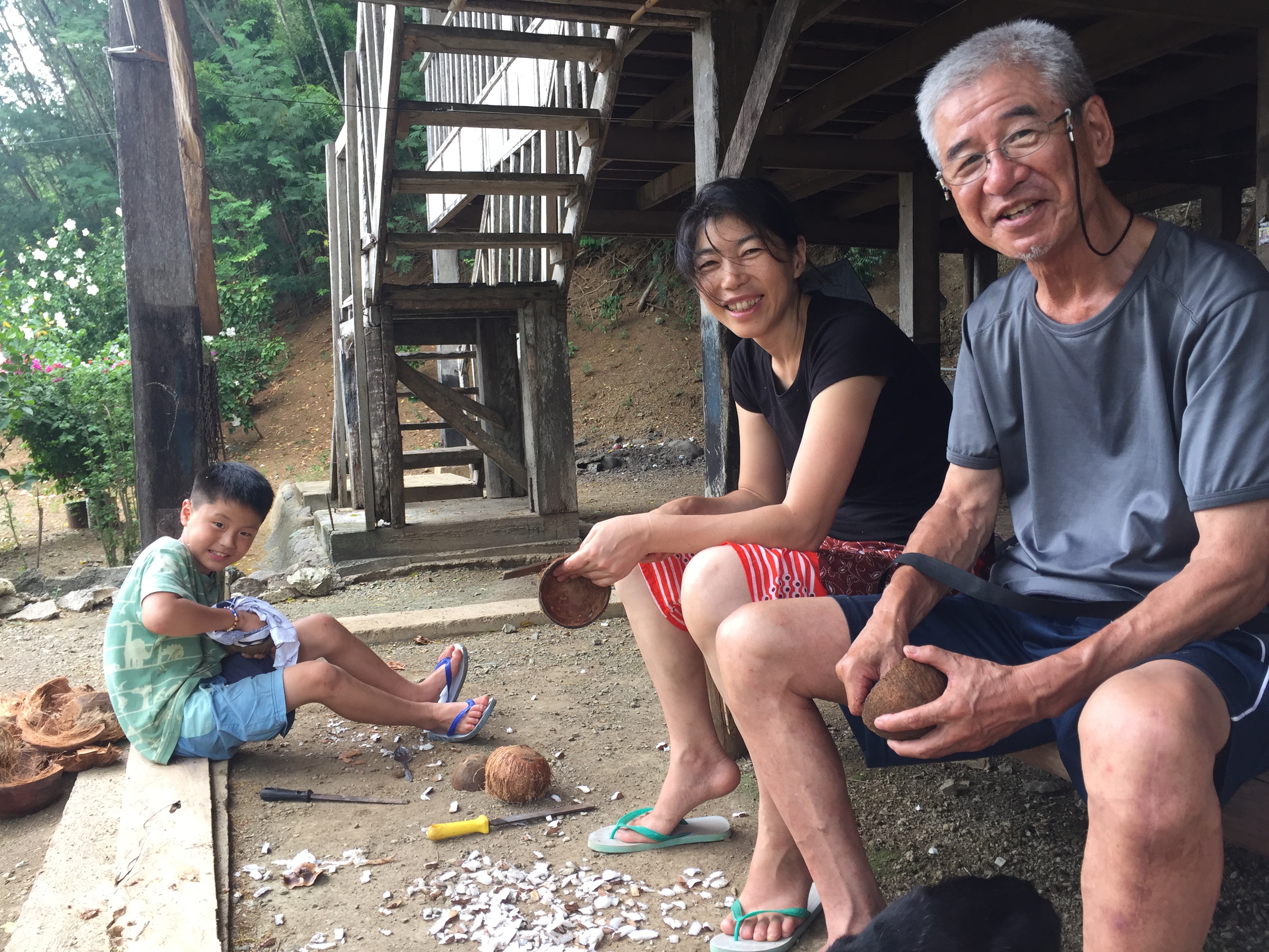 小学校を見学した後は、シャロームハウスで夏休みの工作作り!前のボランティアのアヤカさんが始めたココナッツボウル作りをしました!