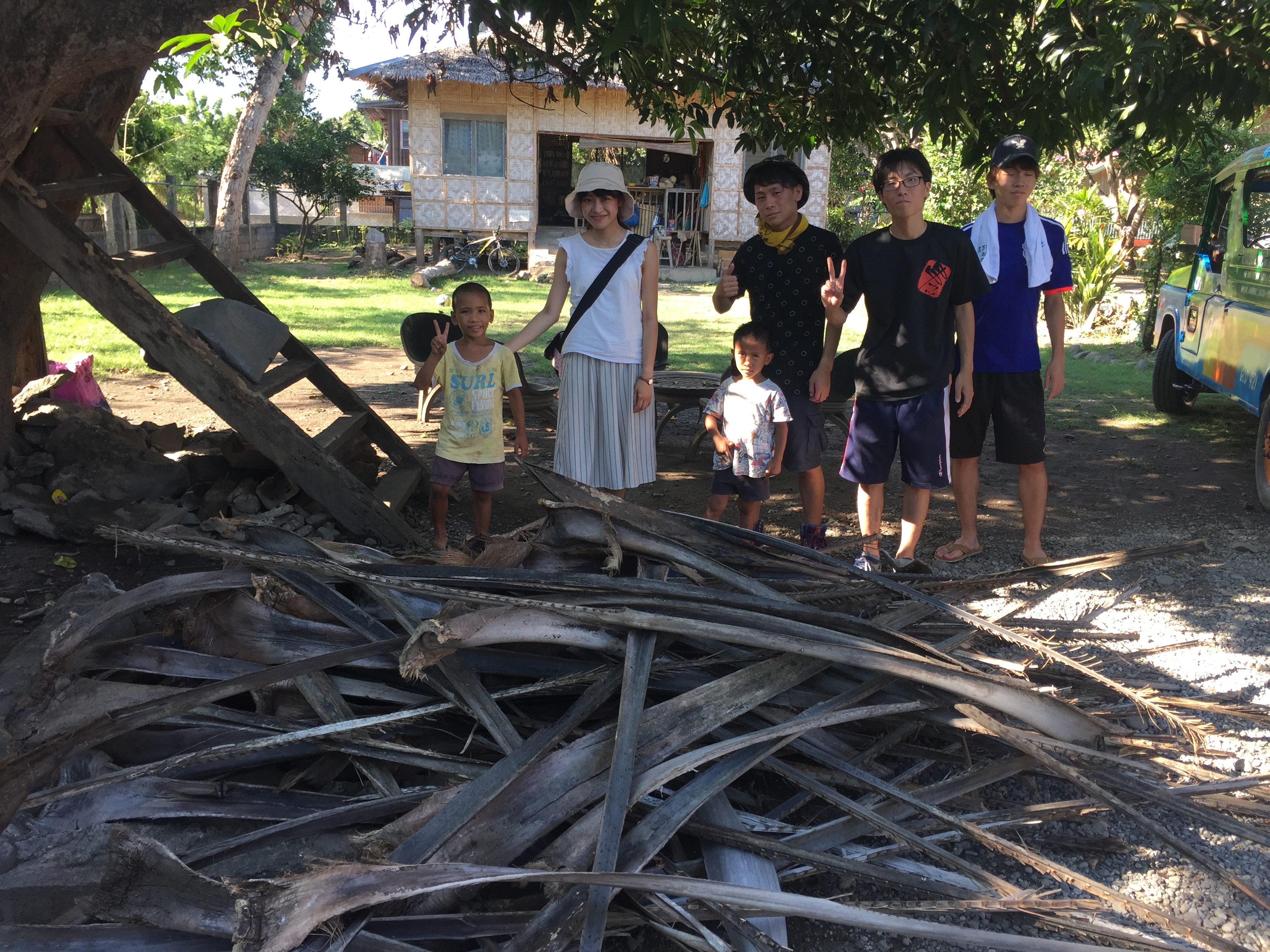 ハウスオブジョイに帰ってジープからヤシの木を出してみると、こんなに沢山の量になりました!みんな頑張ったね!