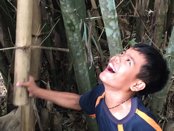 というわけで、学校が休みなので、こどもたちと一緒に山に竹を取りに行きました。