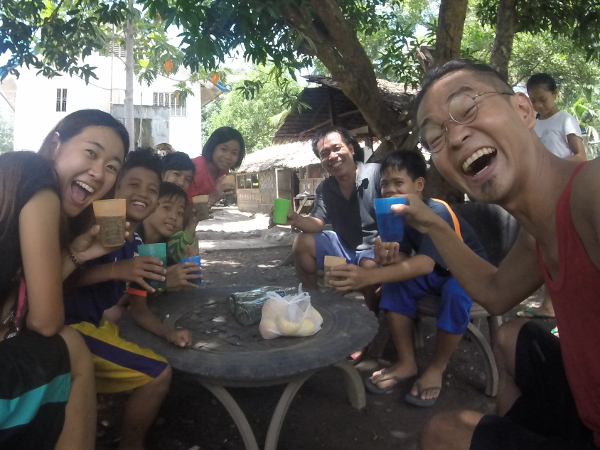 HOJに戻って、竹を洗ってからみんなでおやつタイム。労働の後の一杯はおいしいですね!