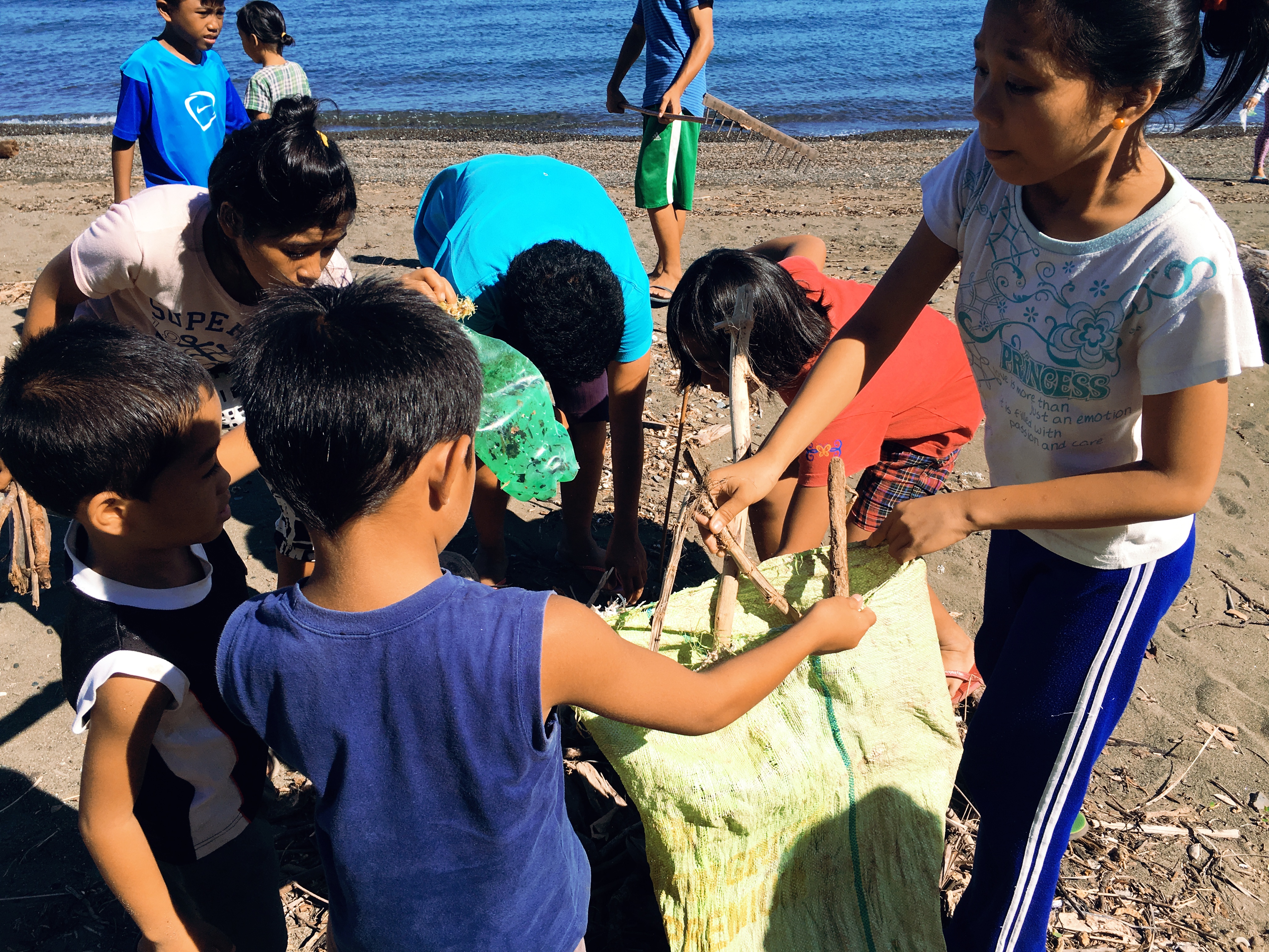 ビーチに到着するや否や、まずはみんなでゴミ拾いです。