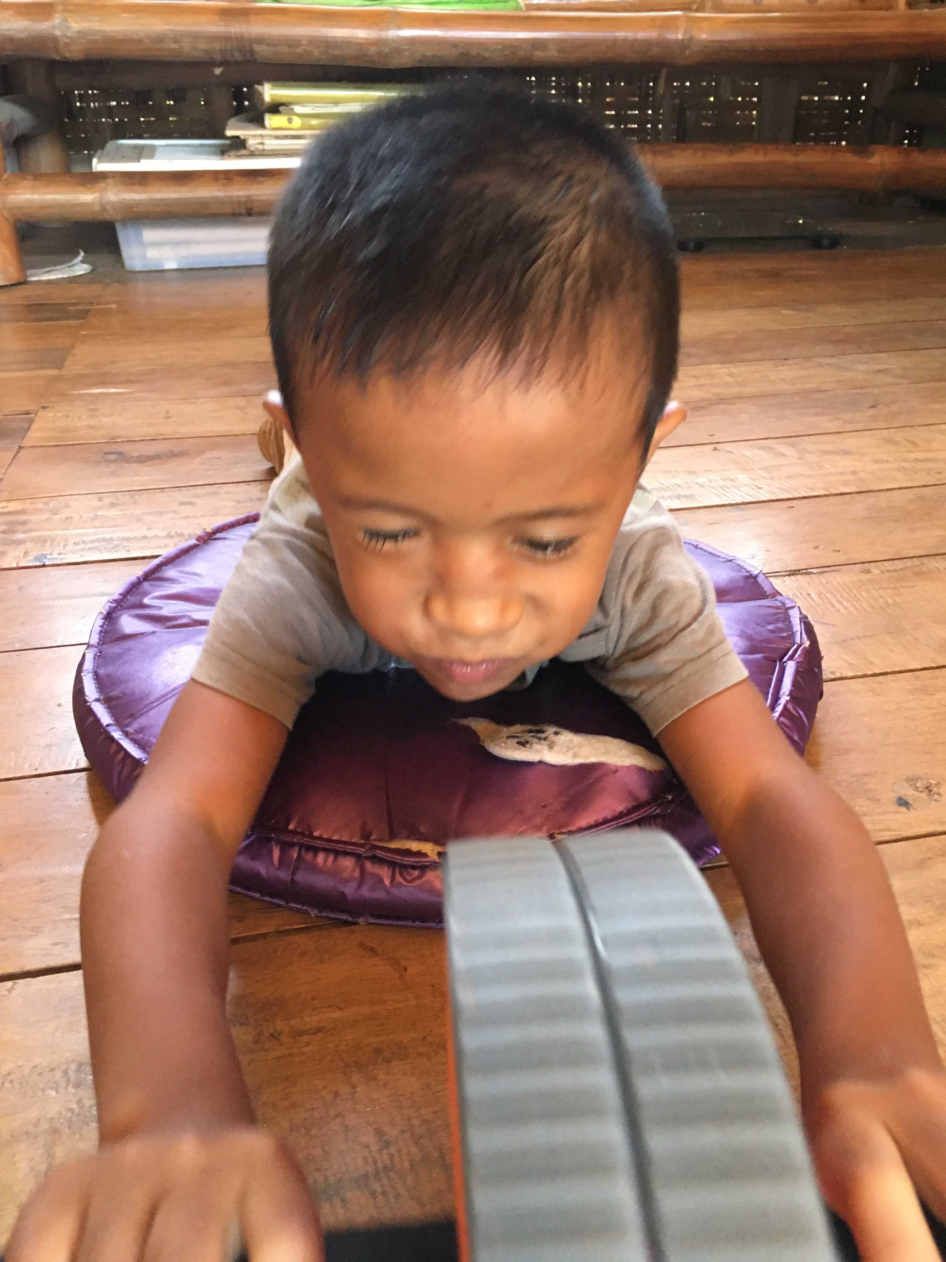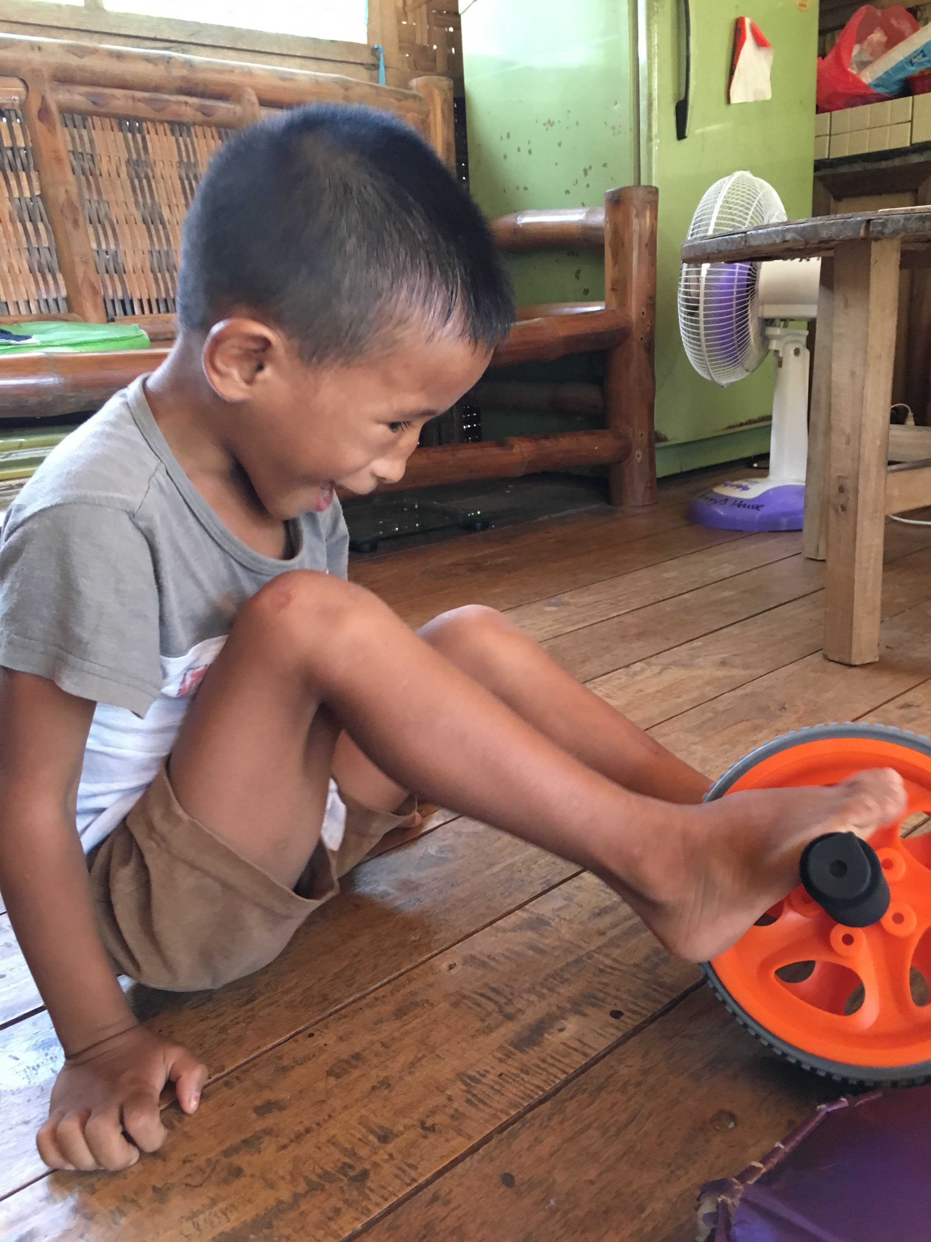 さすがです。様子を見ていると、少し違う動きになり始めました。アルジェには、このエクササイズグッズが足にも使えるようです。