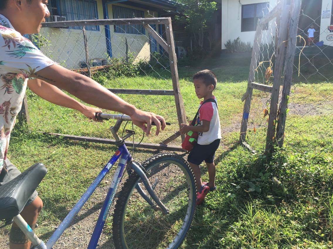 今からアルジェは保育園です。ヨシさんが送迎してくださいます。送迎風景の写真です。