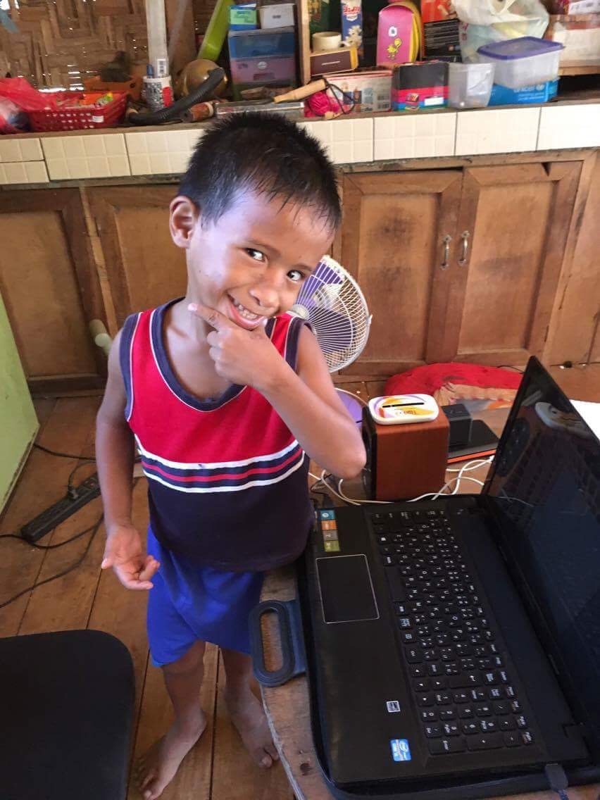 パソコンの前で何かを企むアルジェの写真です。