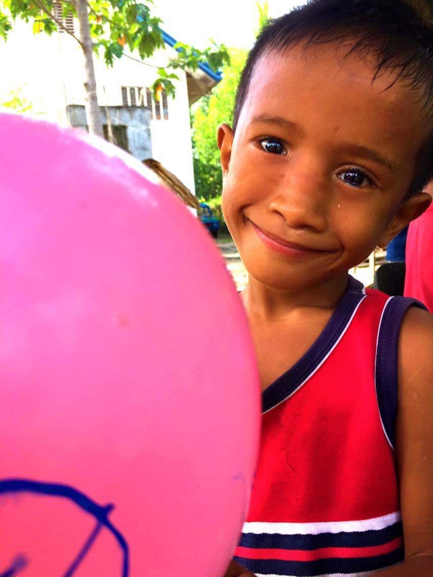 風船とアルジェの写真です。 アルジェの笑顔に癒される日々です。