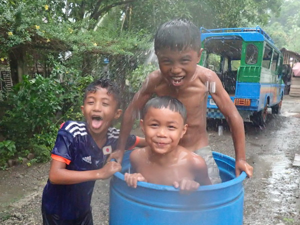 そして3時くらいから土砂降りになったので、学校から戻ってきた子たちと一緒に雨で水浴び!