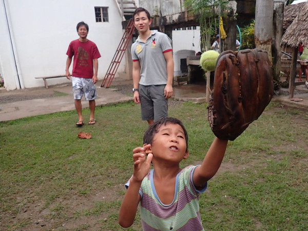 そしてこれはレア、野球です!グローブをつけてキャッチボールをするだけでも、物珍しさでみんな大喜びです。