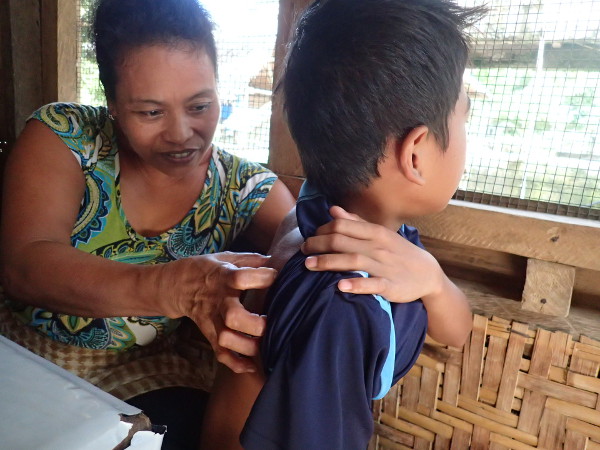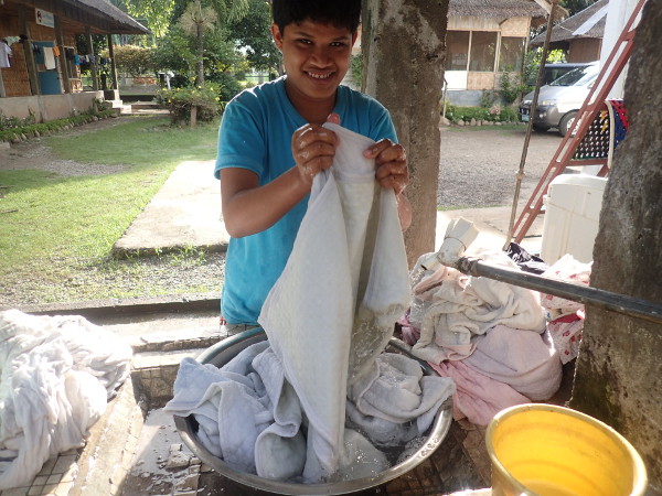 新スタッフのナリーさんが、「わたしマッサージできるわよ!」と言って、ジルマーの背中をマッサージしてやっていました。