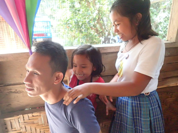 ちょうどお昼休みだったので、帰って来ていた子たちがそれを見て「わたしもやってあげる!」とマッサージ大会が始まりました。