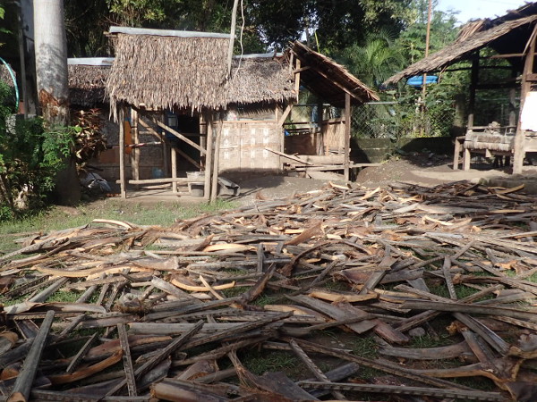 湿ってしまっていた薪を敷地いっぱいに広げて乾かしています。