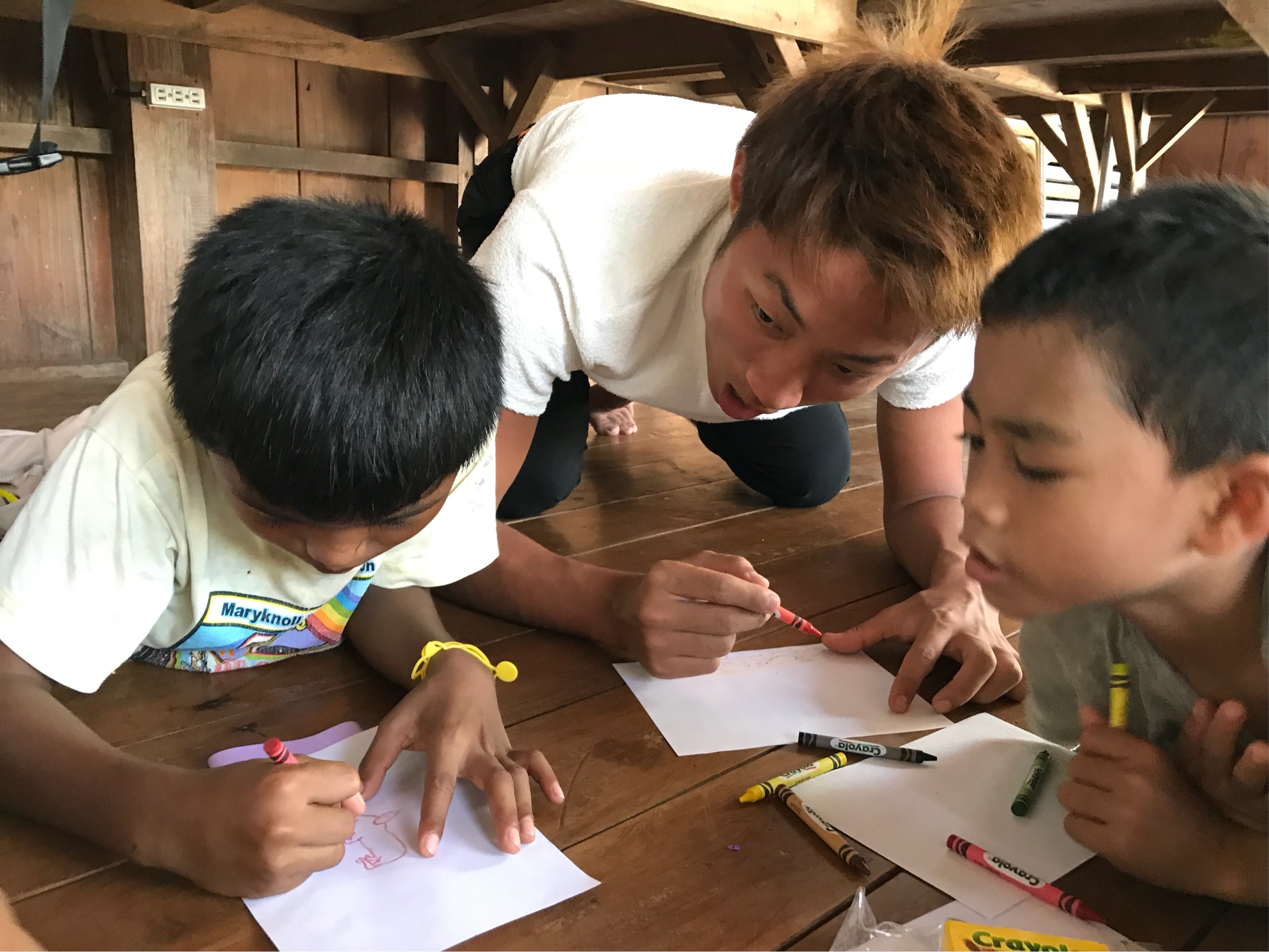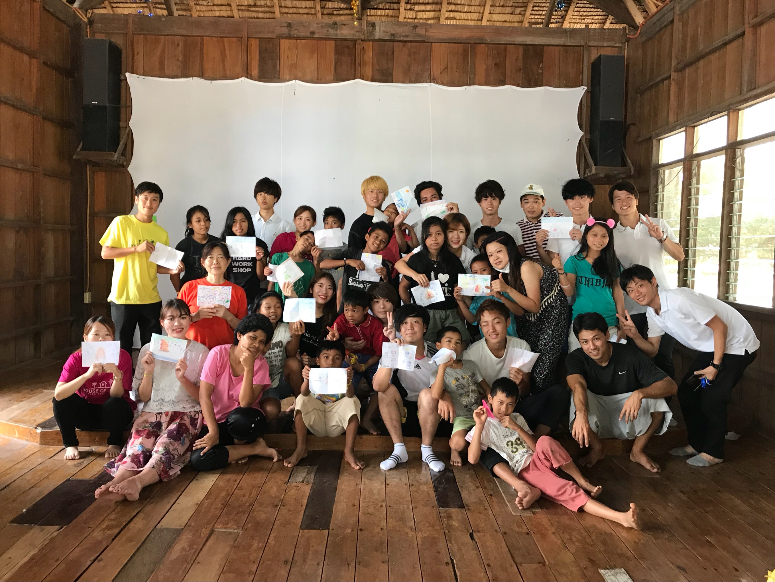 さて、運動会に引き続き、関西大学のみなさんがお絵かきアクティビティを開催してくれました!関西大学のみなさんが滞在している間、思い出に残っていること・楽しかったことを子どもたちに紙に書いてもらって、発表しようという企画です!