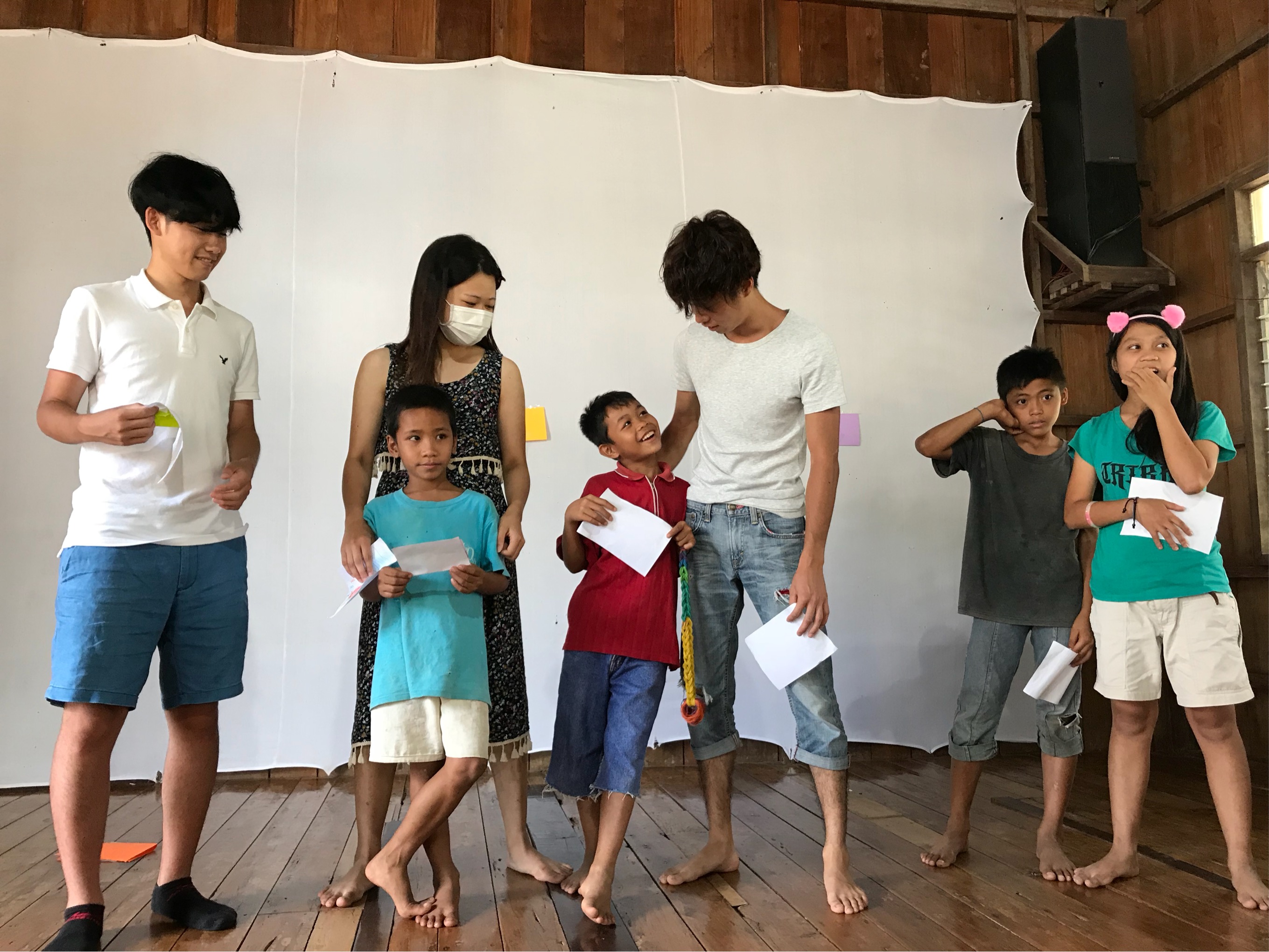 さて、書き終えた後は発表会です。が、ここでちょっとしたハプニングが。1番はじめに発表するリッキーガマイが恥ずかしいモードに入ってしまって、全然発表してくれません(笑)学生さんたちがガンバレ!と励ましますが、全然効きません。。その流れが、後の子たちにも連鎖して、みーんな恥ずかしいモードに入ってしまいました(笑)