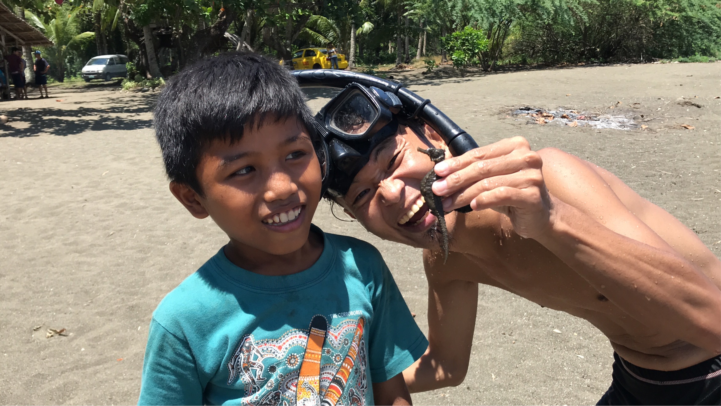シンさんと子どもたちは海に潜って、タツノオトシゴを獲ってきました!わぁ、珍しい!小さくて可愛いー。他にも、アメフラシの卵であるロコットを大量に獲ってきたので、酢でしめて、みんなで食べました♪