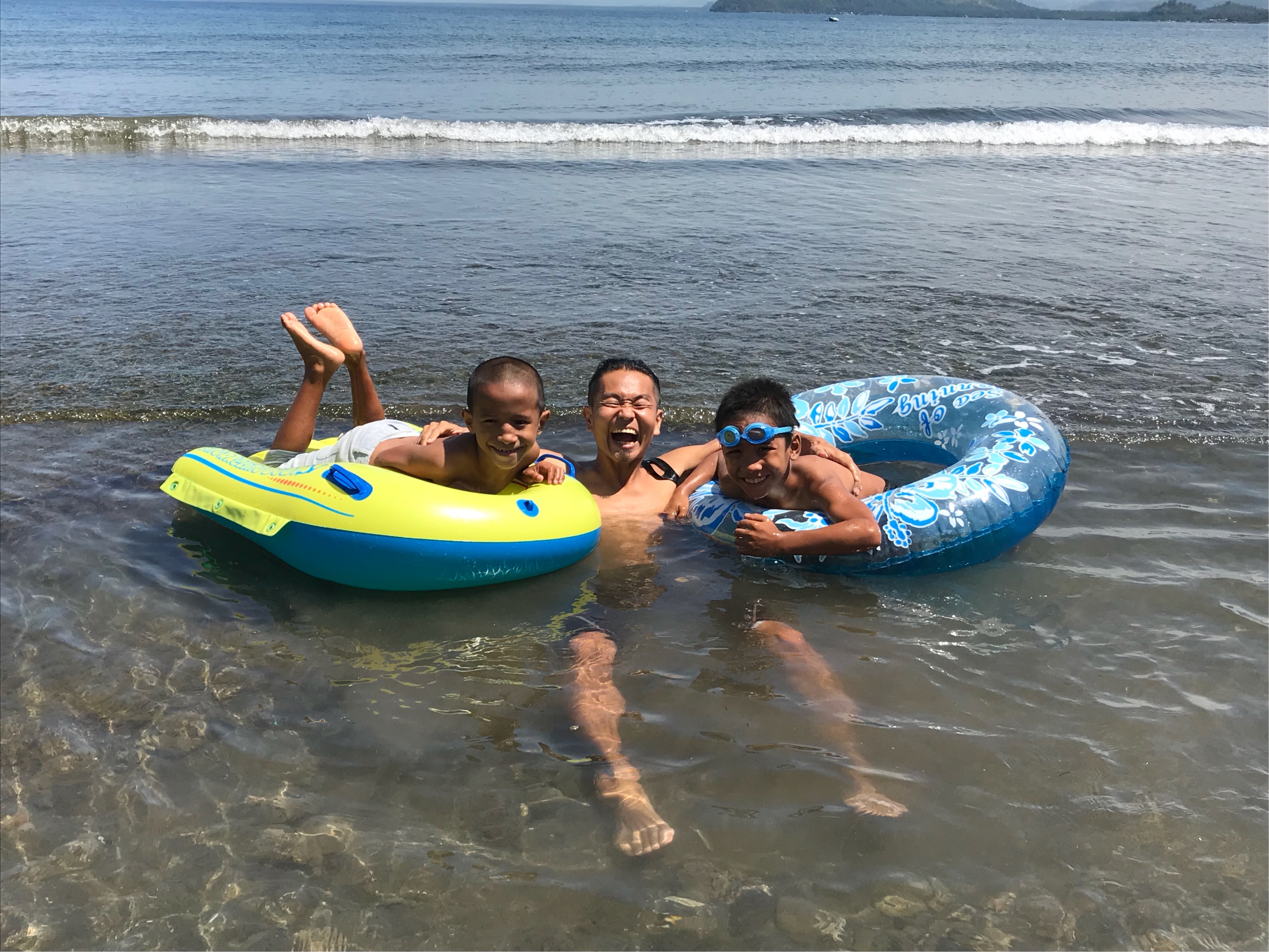今日は、シンさんが日本での出稼ぎを終えて、ハウスオブジョイに帰ってきてから初の週末、ということでウラワビーチへ行ってきました!!!海に着くなり、1番に海へ走って行ったのは、、、この3人でした!