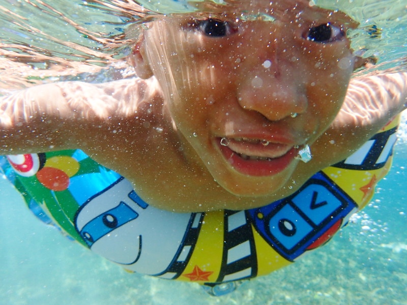 今なら個人レッスン可能!ということで、まず一緒に泳ぎの練習。半魚人に育てようと思います。(笑)