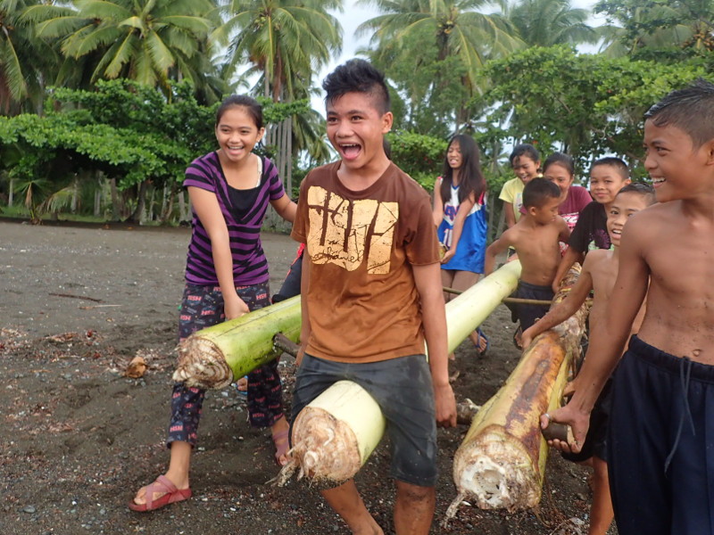 なんと自分でバナナの木の幹を切ってきて、これでイカダを作るそうです。さすがですねー。