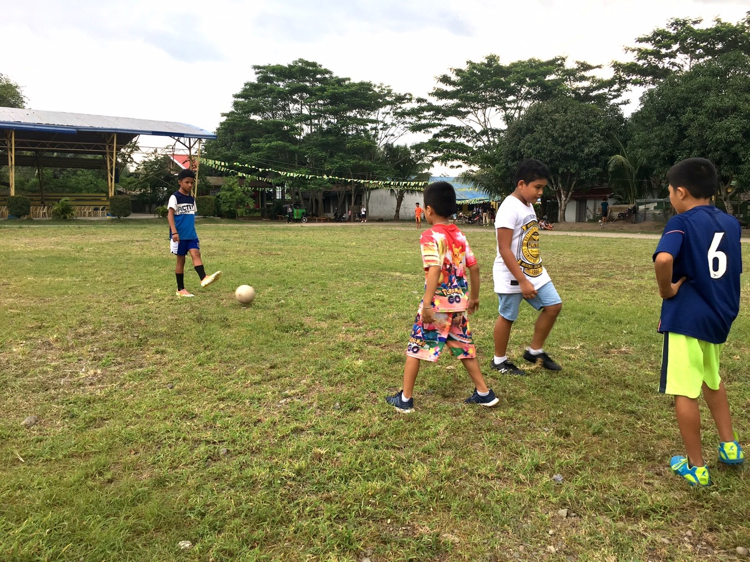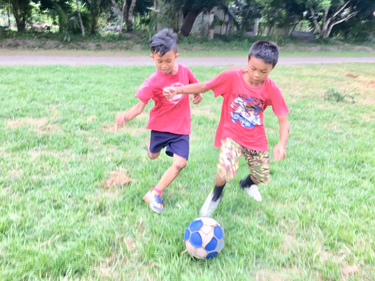 そして午後は、サッカー組は大会に向けて練習をしていましたよ!やる気に満ちたジャンジャンがたまりません(笑)軽く準備運動にジョギングをしているのかと思いきや、コーチに何週も走らされていました。これって練習方法的に効率悪いんじゃないか?ボールもバレーボールを使っているし、少ないボールを使って交代交代で練習しているし、グランドにはこぶし大の石がコロコロ転がっているし(笑)なんだかいろいろ思うところはあったのですが、それでもやっとボールを触れるとなると子供たちは大喜び!30分くらいの長いランニングがあった後、子供たちはボール回しの練習をしましたよ。