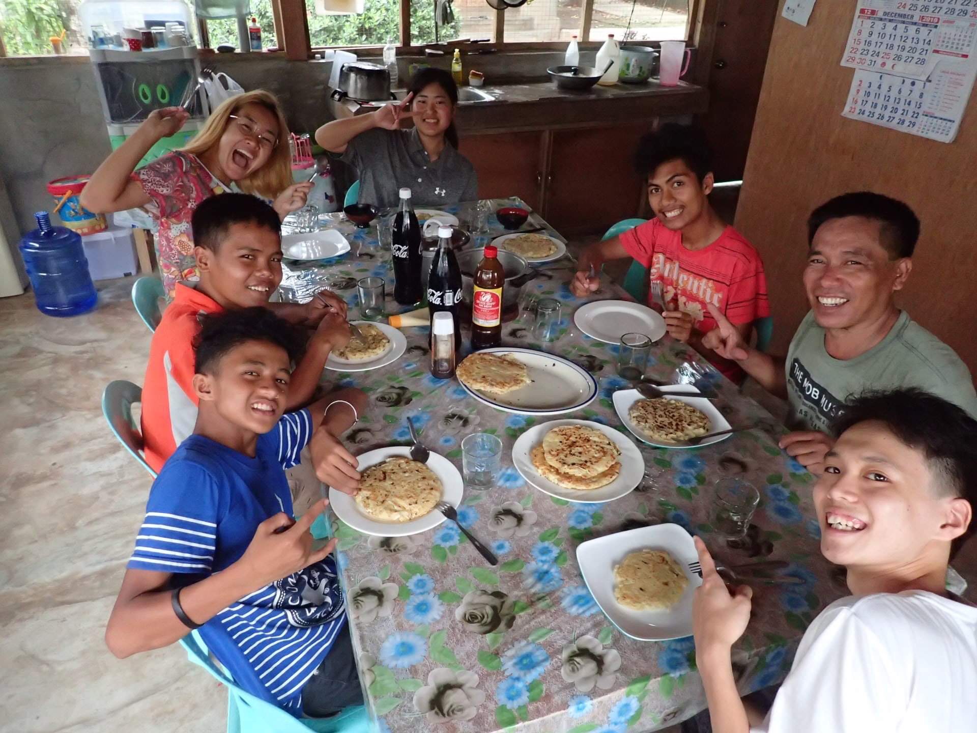 お昼ご飯は、お好み焼きを作ることに! 市場へ野菜の買い出しに行くところから始まり、