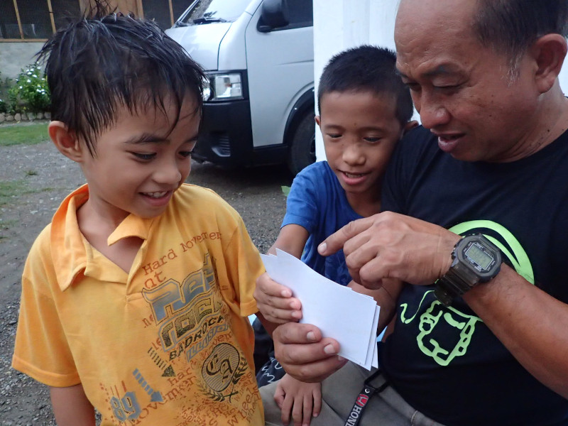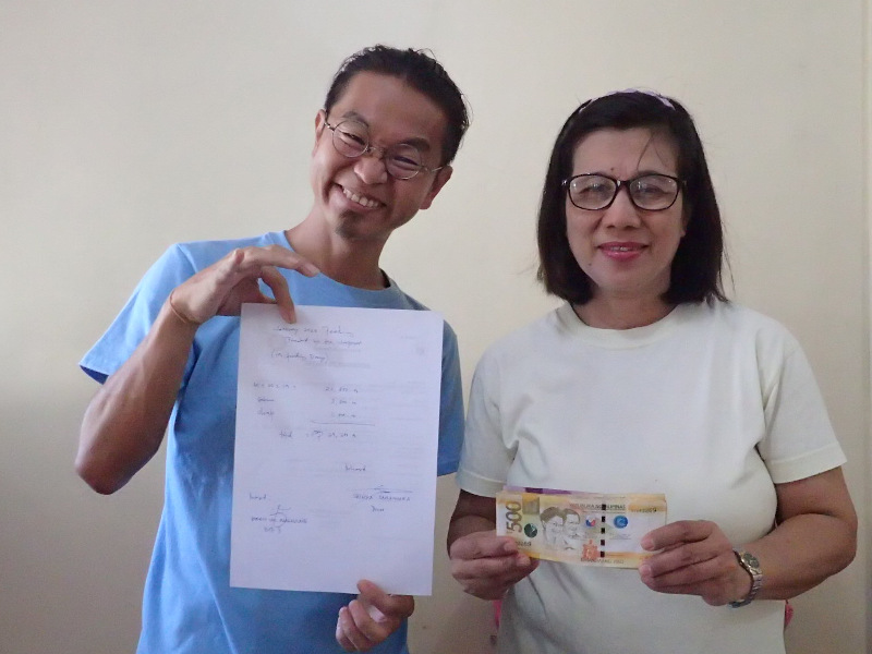 私はサンロケ小学校の給食プロジェクトの資金を校長先生に渡してきました。