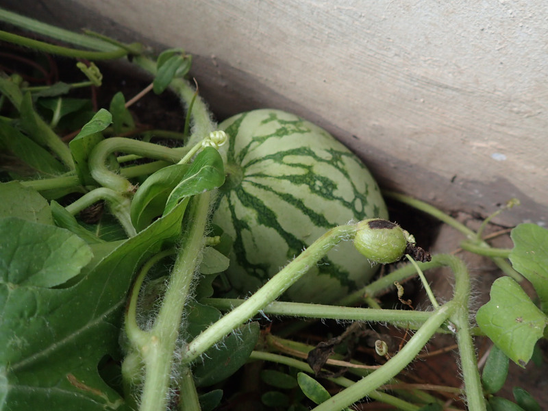 …と思ったら、スイカがなってました!え?これカボチャじゃなかったの?