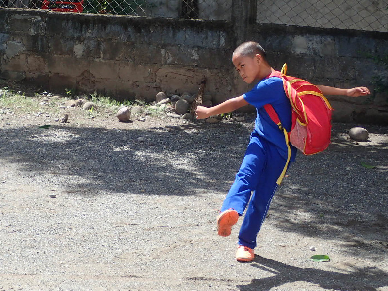 ジャンジャンはカバンを下ろす暇も惜しんでサッカーを始めました。すっかりサッカー少年です。