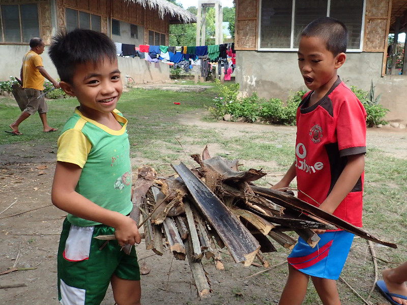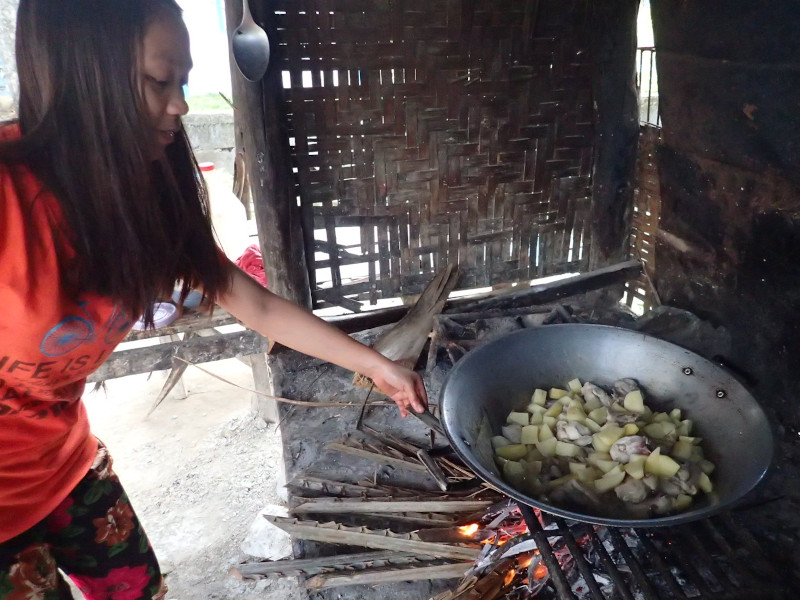 その薪で女の子たちは料理当番です。今日のメニューはフィリピンの代表的料理、チキンアドボ。
