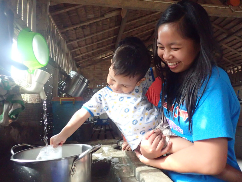 今日はお姉さんたちがやっている皿洗いに挑戦です。