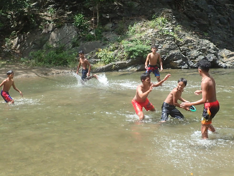 久々の川にこどもたちは大興奮。男の子たちは走り回り、泳ぎまくり、飛び込み、ボールをぶつけあい、