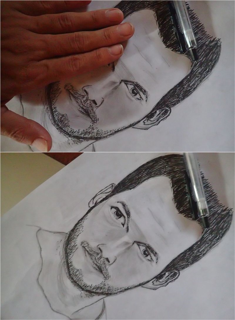 先に描いた目を自分の手で覆い隠してしまうことになるので、こんなふうに、