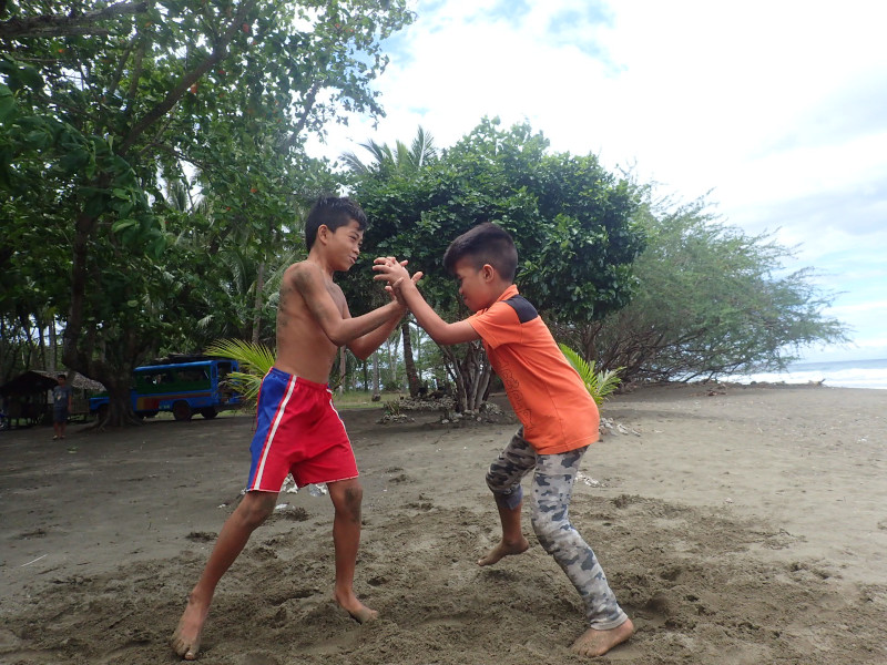 昨晩、ジャッキーチェンの映画を見たこともあって、男の子たちは取っ組み合いしたくてたまりません。