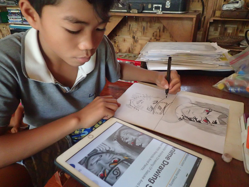 ジャンデルが最近また絵を描き始めたのに刺激を受けて、ジャンジャンも描き始めました。